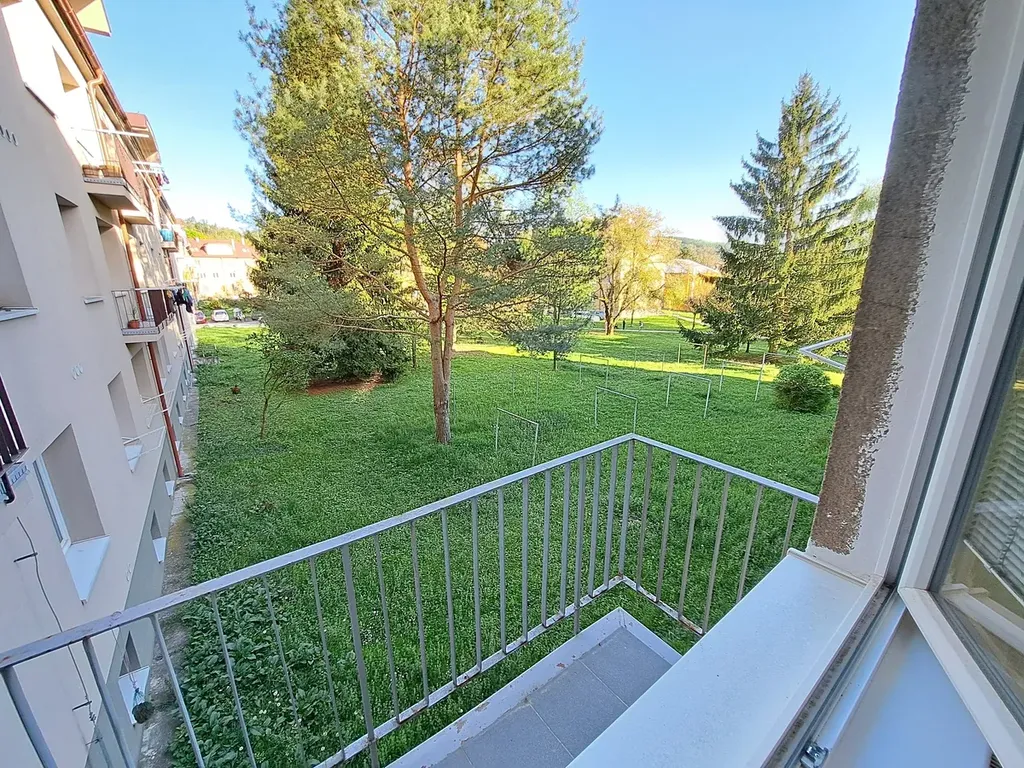 Dispozice bytu: vstupní chodba, obývací pokoj s kuchyňským koutem (25,0 m²), ložnice (15,6 m²) s přímým vstupem na balkon (2,0 m²), koupelna s vanou a umyvadlem, samostatné WC a dva sklepy (5,7 m² a 1,9 m²).