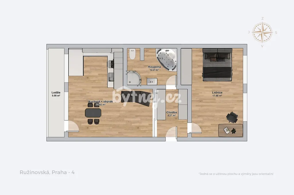Ve výhradním zastoupení majitele nabízíme k podnájmu byt o dispozici 2+kk a celkové výměře obytné plochy 66 m².