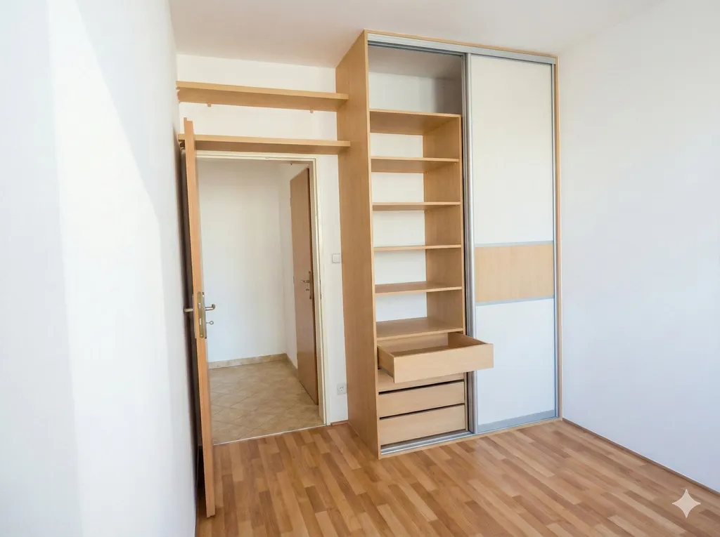 Ložnice nabízí velkou vestavěnou skříň až ke stropu, další úložný prostor poskytuje samostatná komora přímo v bytě. Koupelna je prostorná, s vanou, WC a přípojkou na pračku o šířce až 60 cm.