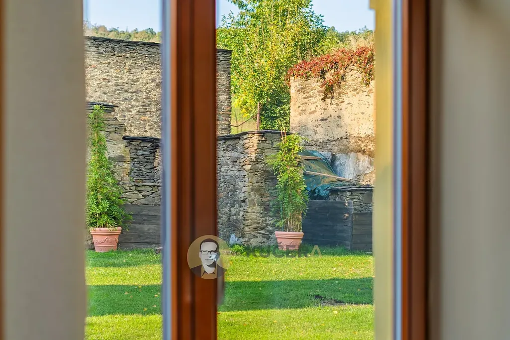 Atmosféru celého místa dotváří kamenné zdi původních stodol, které byly citlivě začleněny do zahrady a vytvářejí jedinečný rámec připomínající malebnou toskánskou scenérii. K domu přímo navazuje terasa z přírodní břidlice o ploše 40 m², ideální pro letní posezení nebo rodinné oslavy.