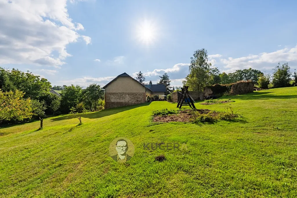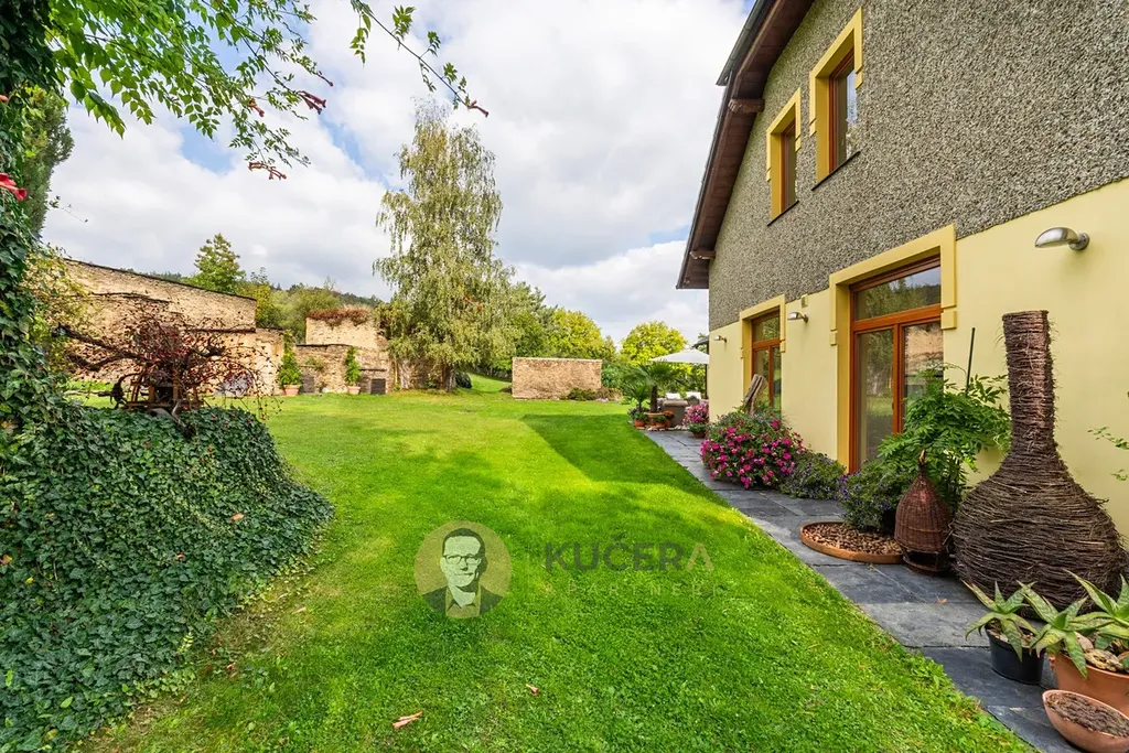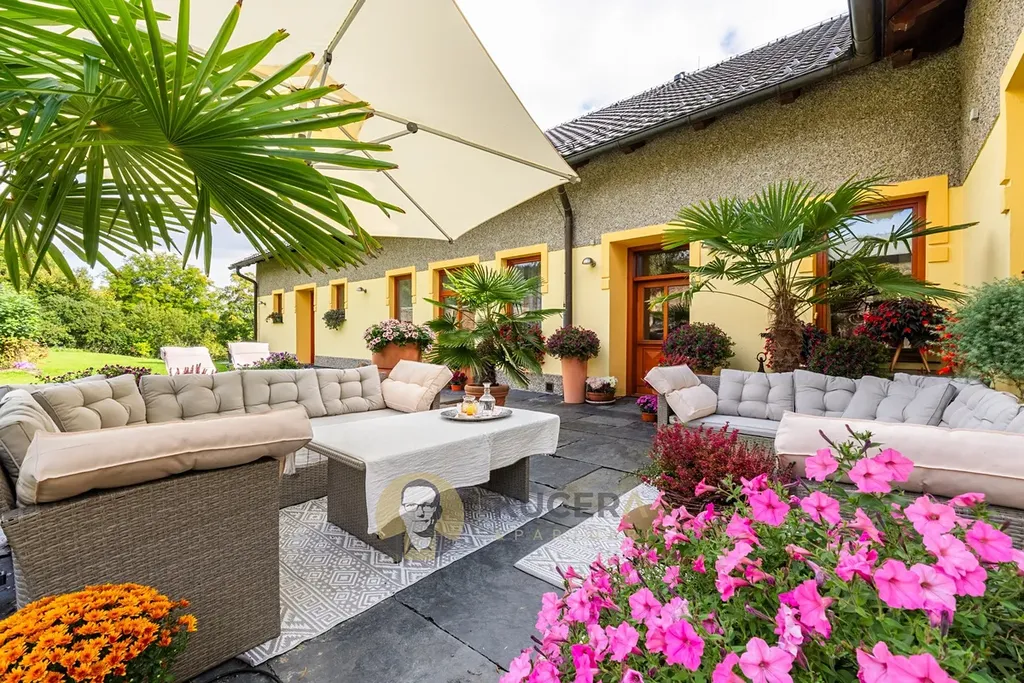 Ve vzrostlé zahradě o rozloze 7 360 m² stojí prostorný rodinný dům ve tvaru písmene L, který prošel kompletní rekonstrukcí. Dnes nabízí moderní, úsporné a technicky precizní bydlení v energetické třídě A. Díky dvěma samostatným obytným jednotkám poskytuje dům naprostou svobodu v tom, jak jej využijete – ať už jako rodinné sídlo s prostorem pro hosty, pro společné chvíle s přáteli nebo pro pohodlné oddělení práce od soukromí.