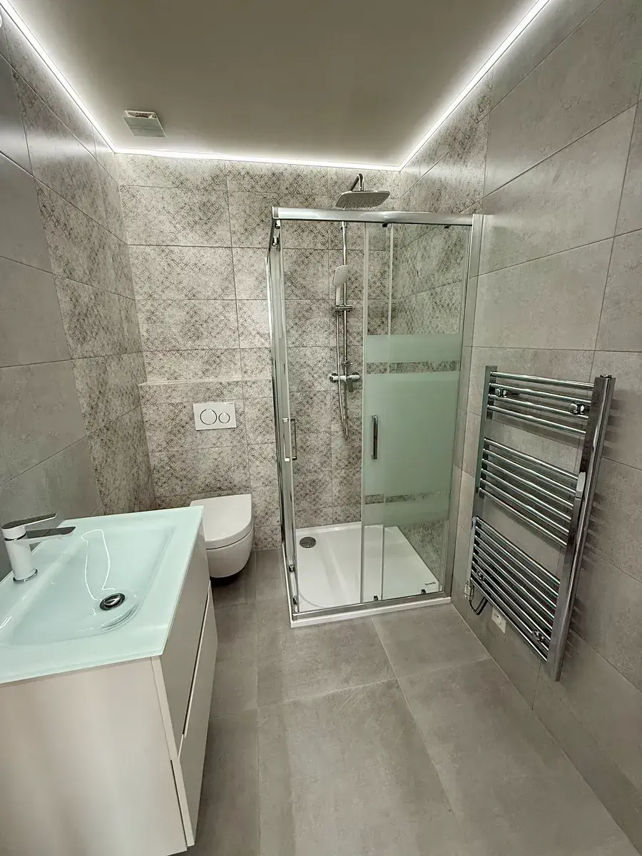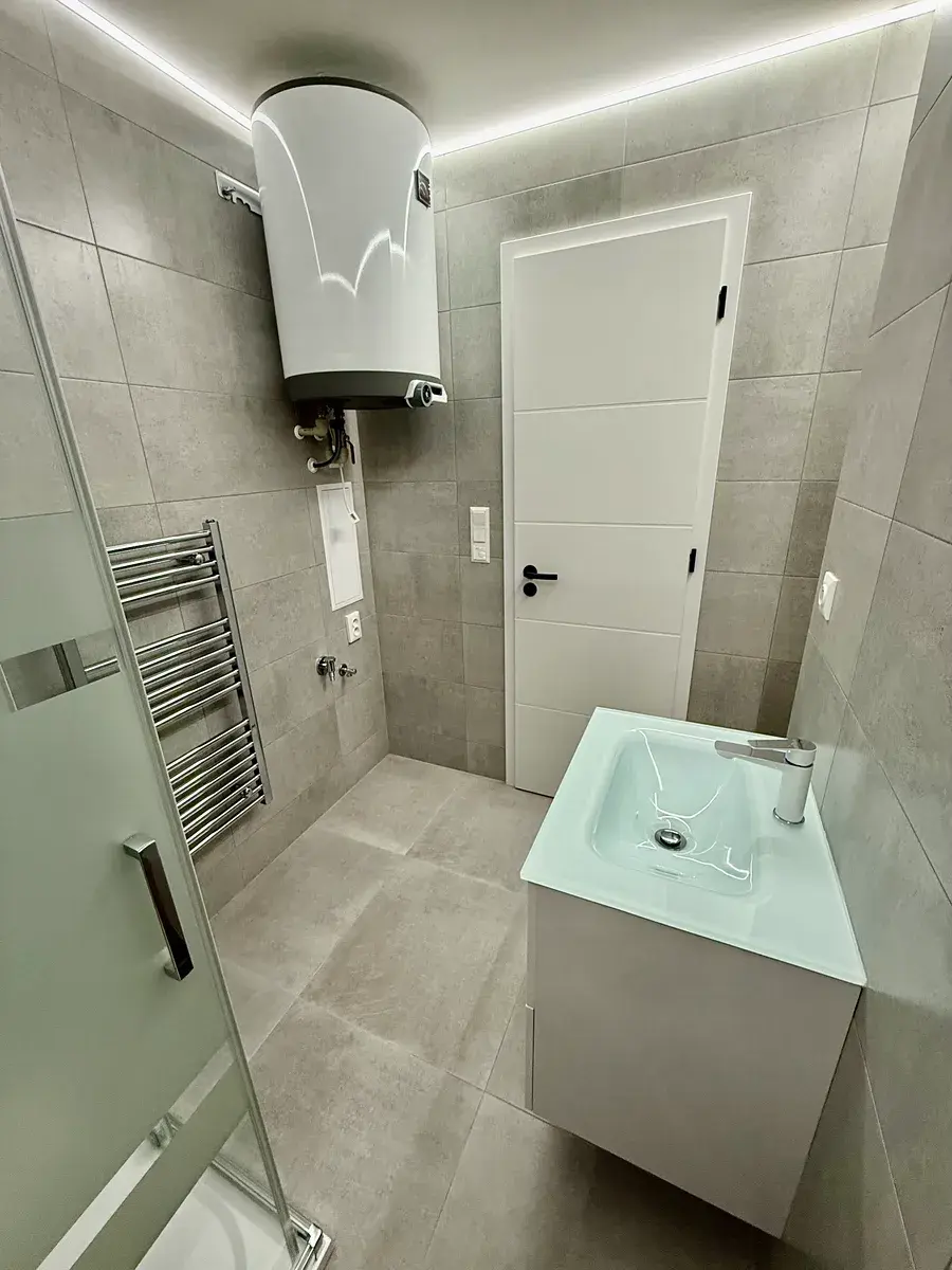 Podlahy jsou pokryty kvalitní vinylovou podlahou s dubovým dekorem, v koupelně a technické místnosti je dlažba. Stěny jsou opatřeny sádrovými omítkami, benátskými štuky a doplněny dřevěným a keramickým obkladem. Koupelny jsou vybaveny zařizovacími předměty od renomovaných značek Villeroy & Boch a koupelny Ptáček a.s., což zaručuje špičkovou kvalitu a design. V bytě jsou instalovány jako topidlo designové topné kameny a bojler, v koupelnách je podlahové vytápění.