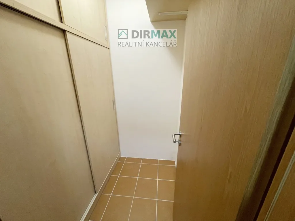 Toaleta je pak zcela samostatně. Přímo naproti toaletě je vstup do komory s vestavěnou skříní a policemi.