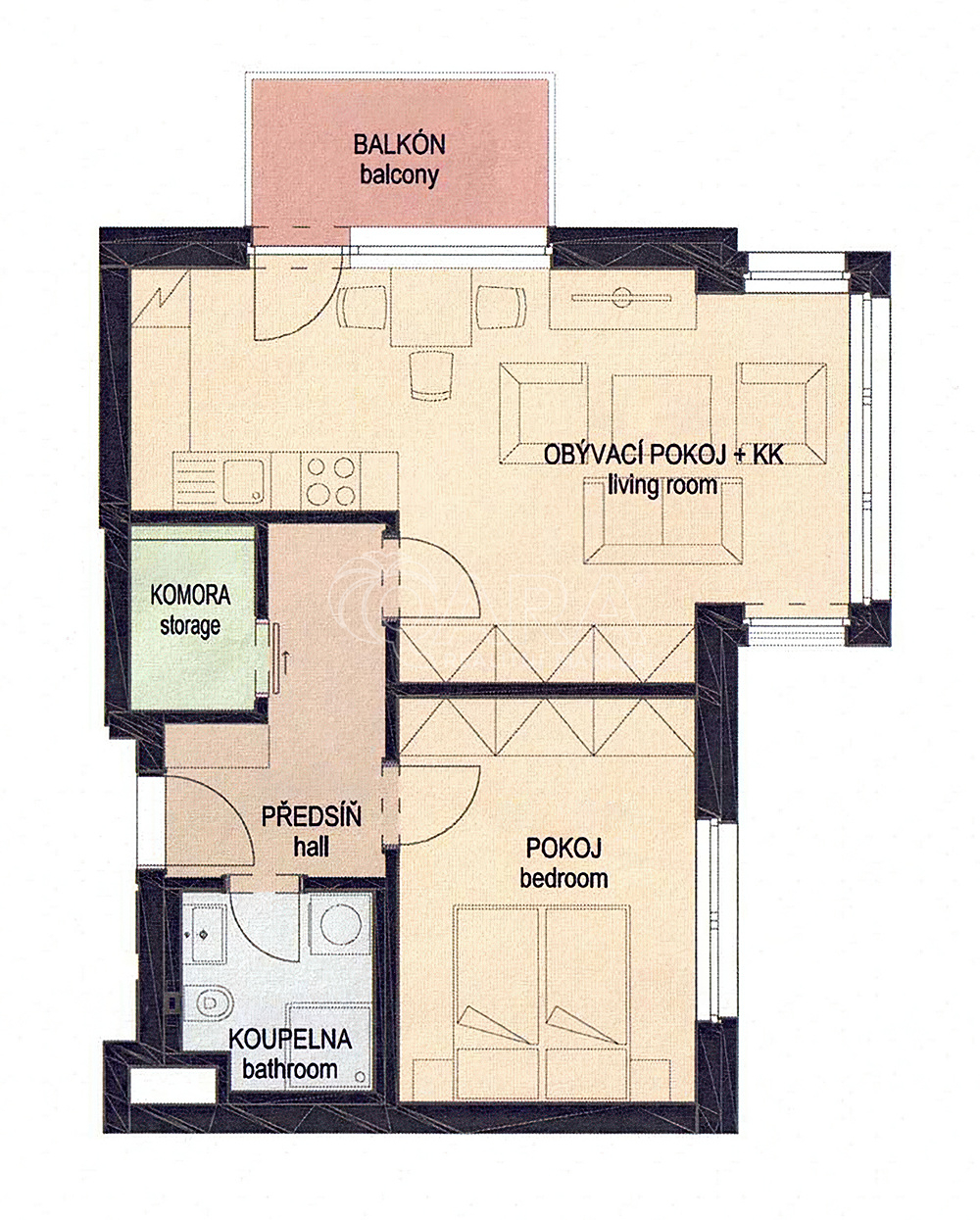 Nabízím k dlouhodobému pronájmu světlý byt 2+kk o velikosti 51,2 m² s balkonem (4,7 m²), který je orientován do parku Židovské pece. Byt je plně vybavený (viz foto) a disponuje dostatečným množstvím úložných prostor, včetně prostorné komory (šatny), což zajišťuje pohodlné bydlení.