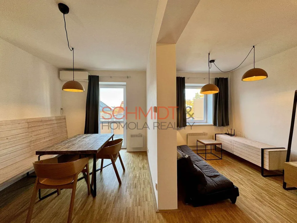 Nabízíme k pronájmu krásný plně vybavený byt 1kk (dva pokoje neoddělené dveřmi) o výměře 44 m² v Mikulově na ulici Purkyňova. Byt se nachází ve třetím podlaží bytového domu, který před pěti lety prošel výraznou rekonstrukcí. Nabízí plně vybavenou kuchyň, ložnici s vestavenou postelí, na míru zhotovený nábytek tvořený designérem. K bytu dále náleží prostorný balkon s přímým výhledem na nedaleký zámek a místnost (sklad) přímo vedle bytu. Vytápění je elektrické s nástěnnými radiátory, v koupelně a na chodbě je topení podlahové. K chlazení slouží klimatizace. Byt má své vyhrazené parkovací stání v uzavřeném dvoře a v kvelbeném sklepě vinnou kóji vhodnou k uskladnění Vašich lahví. Bytový dům je v energetické kategorii B, tedy velmi úsporný. Měsíční nájemné činí 13.000,- Kč, zálohy za služby 3.970,- Kč. Majitel vyžaduje vratnou kauci ve výši dvou měsíčních nájmů, jeden nájem činí provizi RK.
