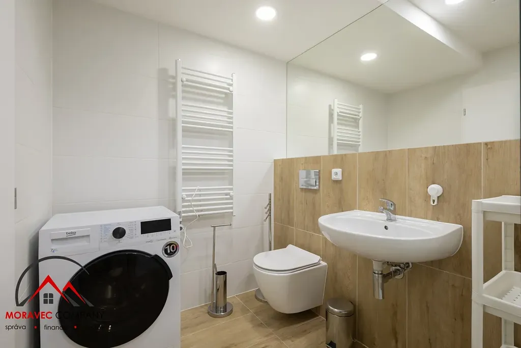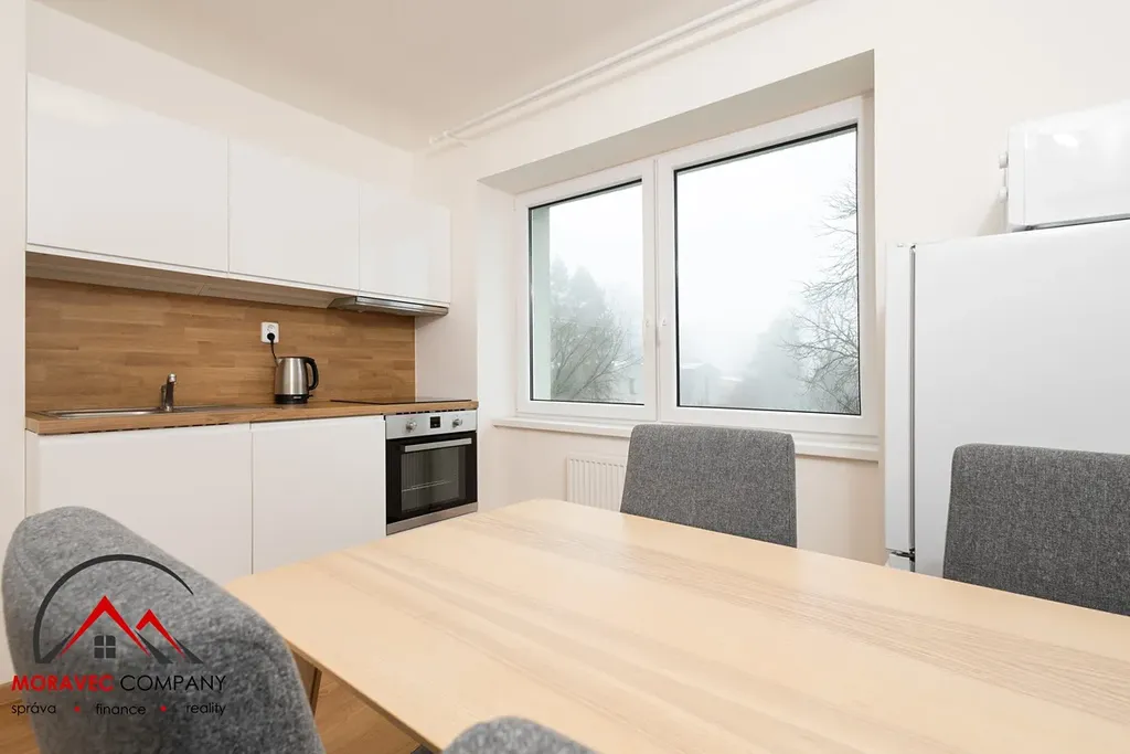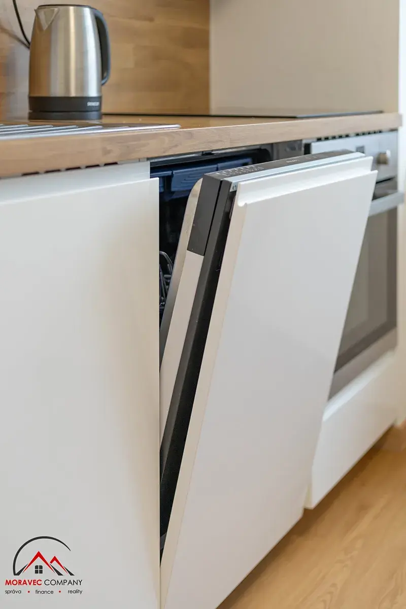 Byt je plně vybaven – nechybí nábytek, spotřebiče, nádobí. Stačí si jen přinést osobní věci a můžete bydlet!