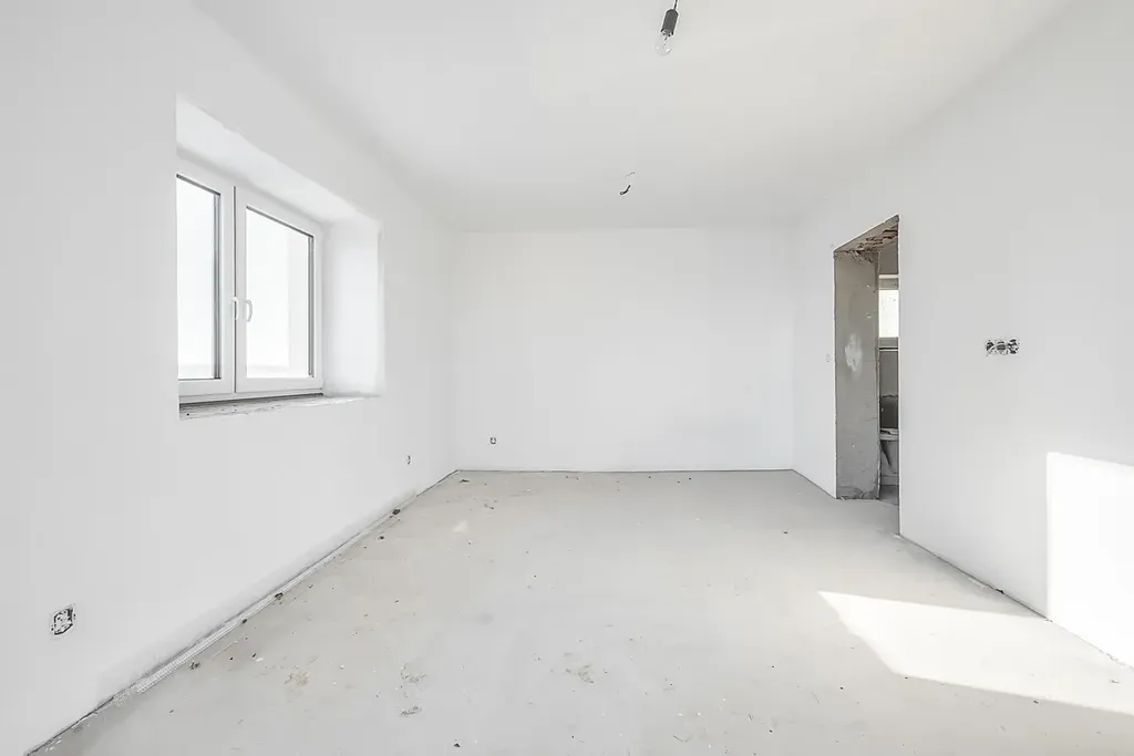 Dokončení finálního vzhledu interiéru domu je ponecháno na budoucích majitelích. Ti si tak můžou dle vlastních představ a svého stylu dobudovat kuchyňskou linku, krb, koupelny, obložky + dveře a podlahy v přízemí.