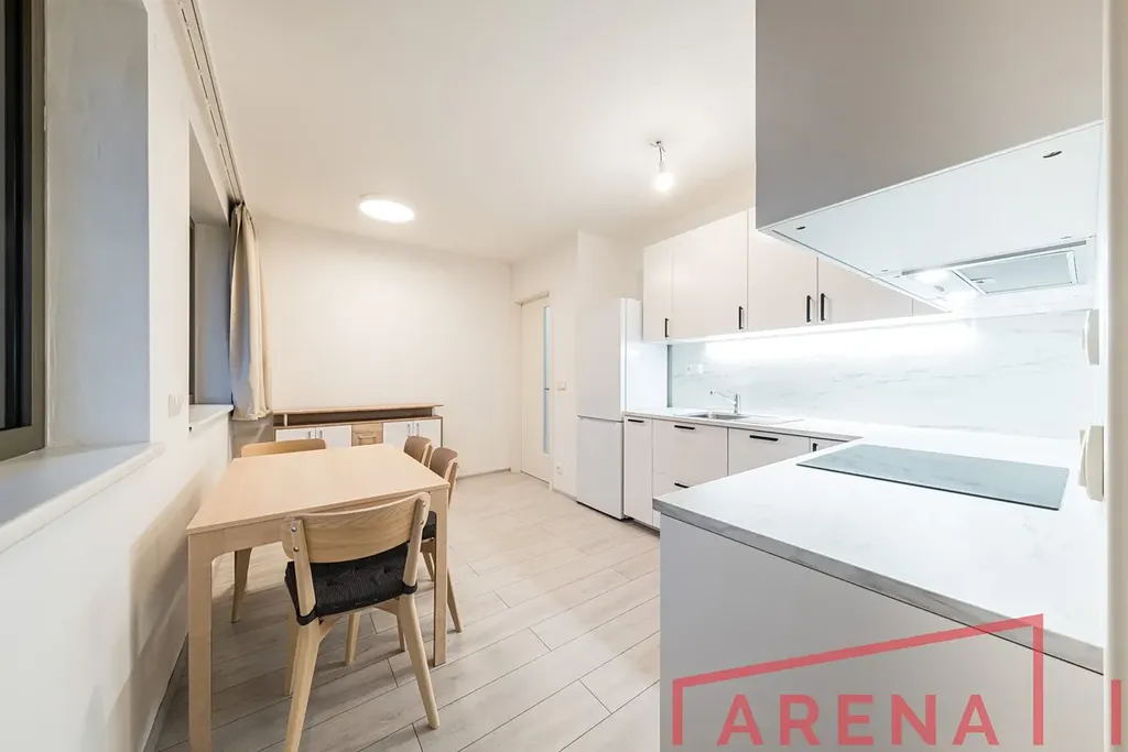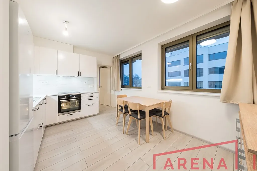 Byt je zcela nový, částečně vybavený a provedený v nadstandardní kvalitě. Kuchyňská linka je vybavena vestavnou troubou, myčkou, indukční varnou deskou, digestoří a lednicí s mrazákem. V obytném pokoji se nachází rozkládací pohovka a manželská postel, v kuchyni a chodbě jsou praktické vestavné skříně a úložné prostory. Po dohodě je možné byt dále dovybavit dle potřeb nájemce.