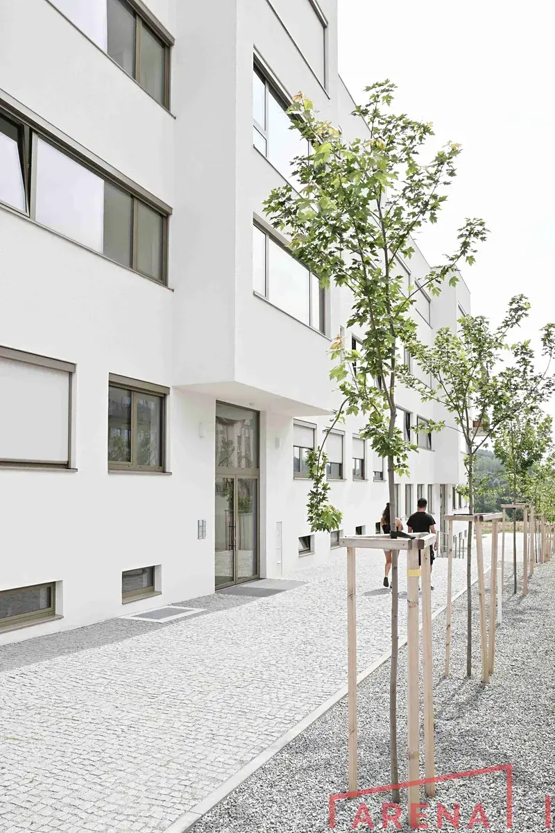 Součástí bytu je velký sklep o velikosti 11,6 m² a vyhrazené parkovací stání. V suterénu domu je k dispozici také kočárkárna/kolárna, která je součástí společných prostor.