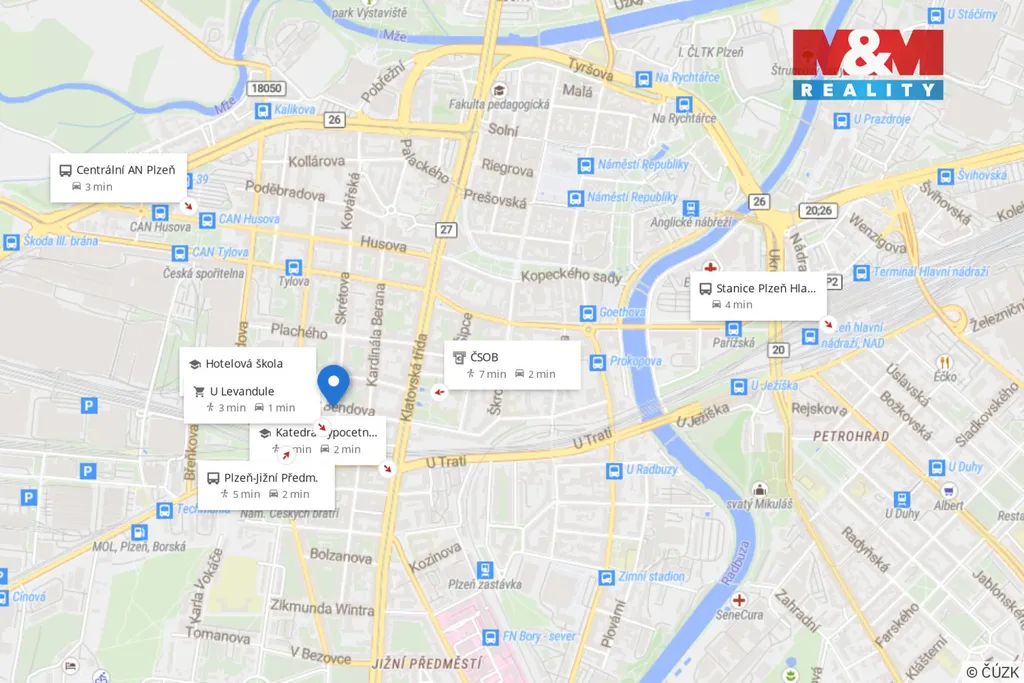 Hledáte vlastní bydlení nebo byt jako investici na pronájem? Velkorysý byt o velikosti 105 m², dispozice 3+1, se nachází ve 3. patře a díky orientaci na jih a velkým oknům je celý interiér krásně prosvětlen. Byt je rozdělen na velkou chodbu, samostatné WC, spíž a prostornou kuchyň, která je propojena s jídelnou, ve které jsou i vestavěné skříně. Do obývacího pokoje se vstupuje přímo z chodby nebo z jídelny. Krbová kamna se sálavým teplem již jen vytvářejí klidnou atmosféru bytu, vlastní plynový kotel i s ohřevem vody snižuje náklady na bydlení. Prostorná ložnice a koupelna je samozřejmostí. Přidanou hodnotou je kolárna a vlastní komora na patře. Veškerou občanskou vybavenost v Plzni máte na dosah ruky, sportoviště i kulturu. 16. ZŠ a MŠ Plzeň je vzdálena 10 minut, lékaři v Fakultní nemocnici 18 minut pěšky. Lokalita je klidná, přitom perfektně dostupná MHD, jen několik minut od zastávky Masarykovo náměstí. Nájezd na D5 je vzdálen pouhých 10 minut jízdy autem.