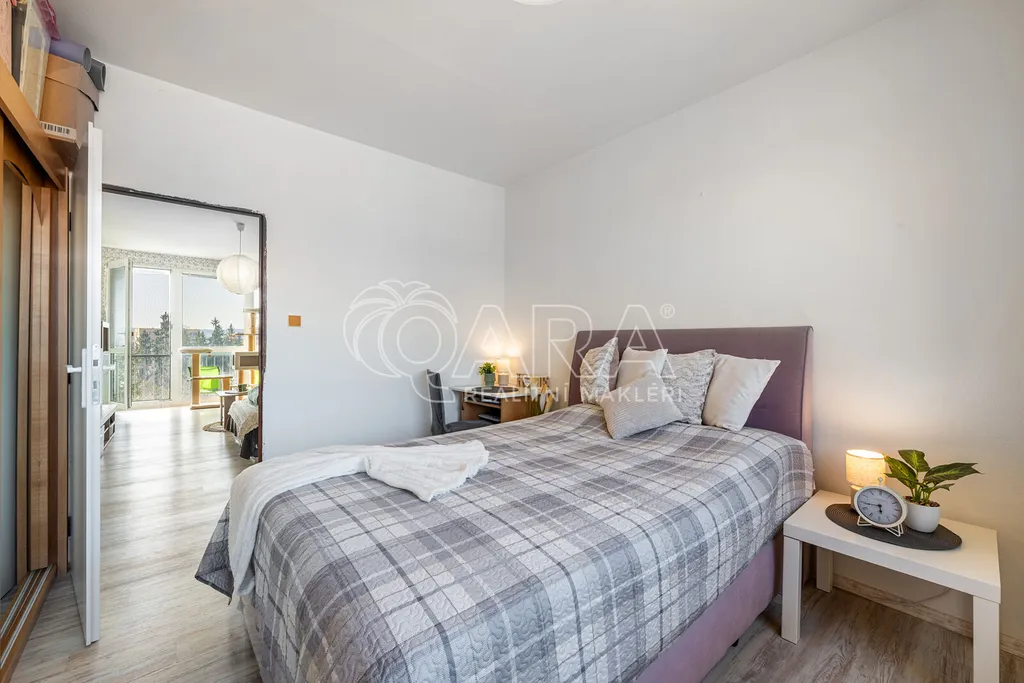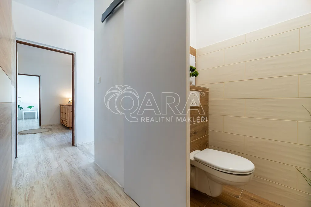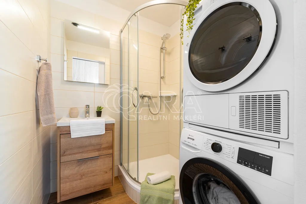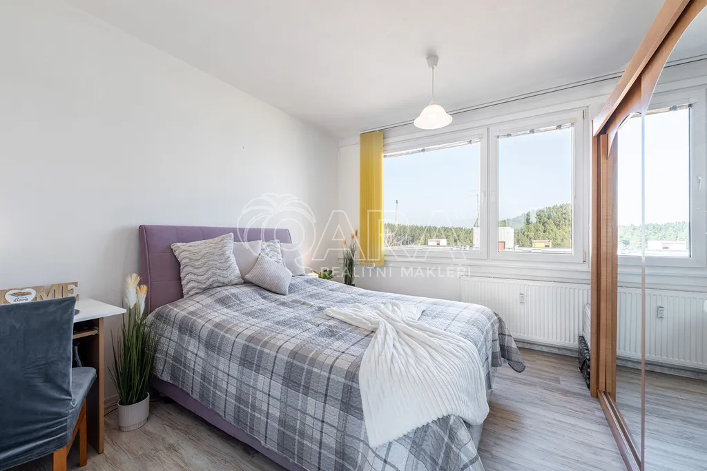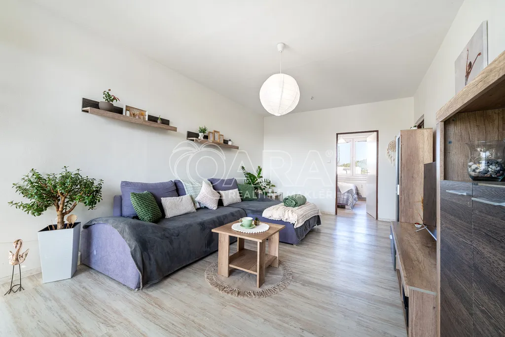 Byt se nachází v posledním patře a disponuje vstupní chodbou, koupelnou se sprchovým koutem a WC, zrekonstruovanou kuchyní, obývacím pokojem a ložnicí s šatnou. Byt je vytápěn dálkově, stejně tak i ohřev vody. K bytu dále náleží prostorný sklep, který je možné využít ke skladování. Společná kolárna a sušárna se nachází v přízemí domu. Úklid společných prostor se řeší rozpisem služeb.