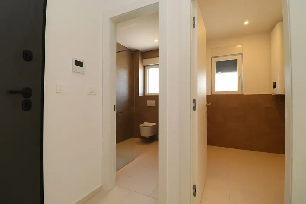 Apartmán o ploše 90,62 m2 je umístěný ve 2. patře třípodlažní budovy a sestává z chodby, 3 ložnic, dvou koupelen, prádelny, obývacího pokoje s kuchyní a jídelnou s přístupem na krytou terasu o rozloze 20,57 m2 s výhledem na moře. Apartmán je ihned k nastěhování, je vybaven bezpečnostními dveřmi, klimatizací v každé místnosti, elektrickými roletami, moskytiérami, podlahovým vytápěním v koupelnách a obývacím pokoji. K apartmánu náleží úložný prostor a jedno venkovní parkovací místo.