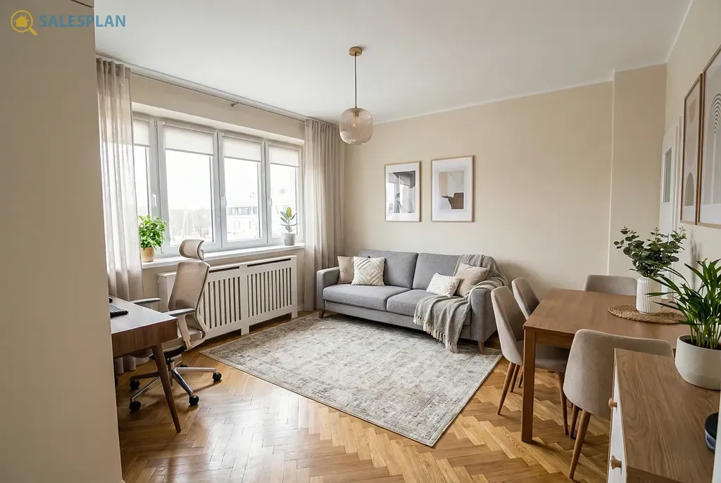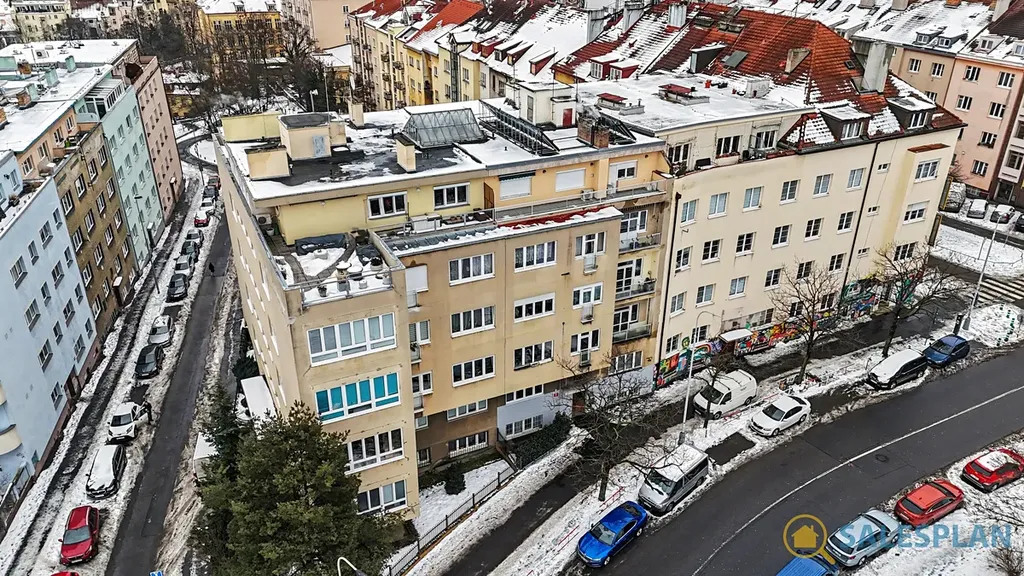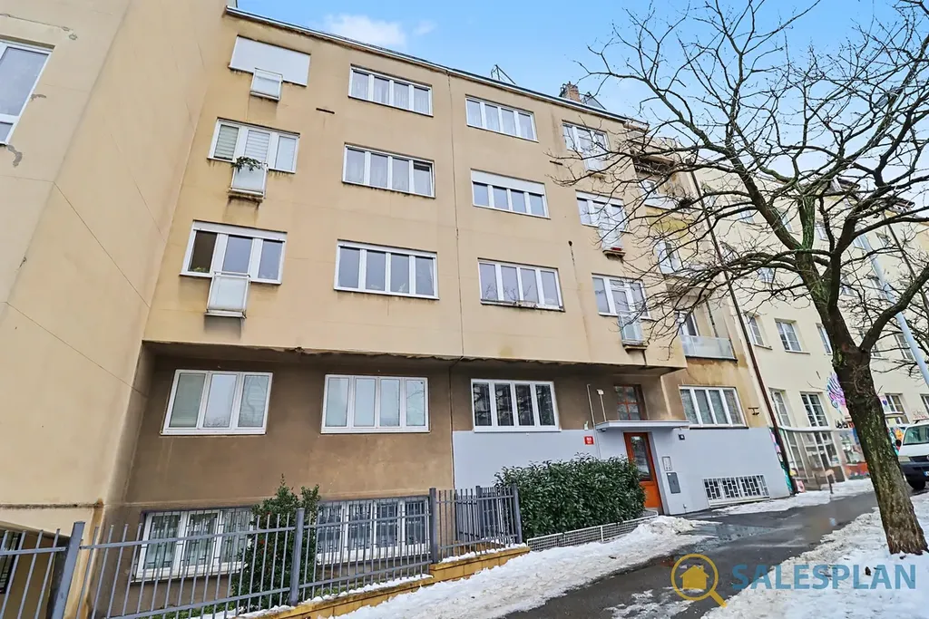 Bytová jednotka se nachází v prvním nadzemním podlaží komorního cihlového domu. Je v dobrém a průběžně udržovaném stavu, avšak s potenciálem pro modernizaci dle vlastních představ. Podlahovou krytinou jsou parkety, které po renovaci mohou být zajímavým designovým prvkem. Dispoziční řešení jednotky je velmi efektivní. Byt se skládá z prostorného obývacího pokoje s kuchyňským koutem, který svým umístěním nenarušuje obývací a jídelní část. Centrální vstupní chodba poskytuje dostatek úložného místa díky prostoru pro vestavěnou skříň. Koupelna a toaleta jsou řešeny samostatně.