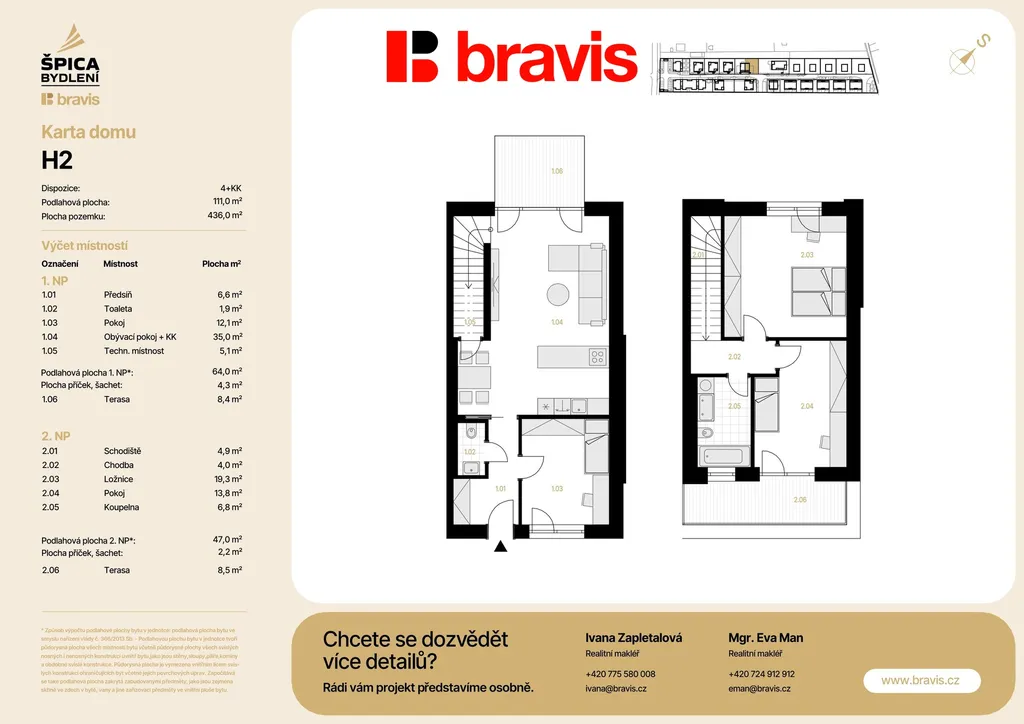 Nabízíme exkluzivní rodinný dům označený H1-2 o dispozici 4+kk, zahrada 267,6 m2 ,terasa 17,4 m2, zpevněná plocha 82,3 m2 v novém projektu Špica bydlení. Dům o celkové výměře 111 m2, plochu pozemku bez domu 357,7 m2.