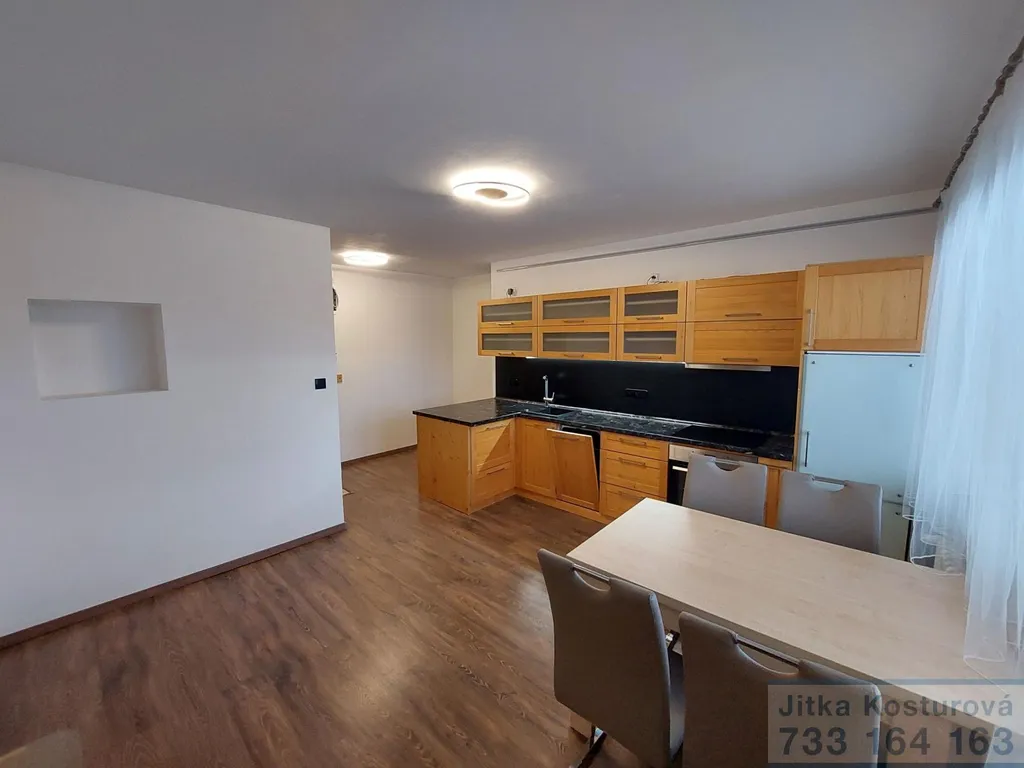 V exkluzivním zastoupení majitele nabízíme na pronájem byt o velikosti 2+kk výměře 42 m2. Byt se nachází na adrese Jesenická 6 v Krnově ve 4. nadzemním podlaží. Velmi stylová rekonstrukce bytu proběhla před 10 lety. V bytě je komora s policovým systémem, velký pokoj s kuchyňskou linkou, samostatná ložnice, koupelna s rohovou vanou, umyvadlem, WC a pračkou a podlahovým vytápěním. Kuchyňská linka z masivu je vybavena spotřebiči - myčka nádobí, elektrická trouba, sklokeramická varná deska, lednice. Vybavení bytu jídelní stůl, 4 židle, pračka, panel na uchycení televize, botník, věšáková stěna. K bytu náleží sklep, v domě je sušárna, kolárna. Náklady na bydlení jsou do Čtyřtisíc Kč pro 2 osoby včetně internetu. Nájemné Jedenácttisícpětset Kč, vratná kauce 2 nájmy, provize 1 nájem.