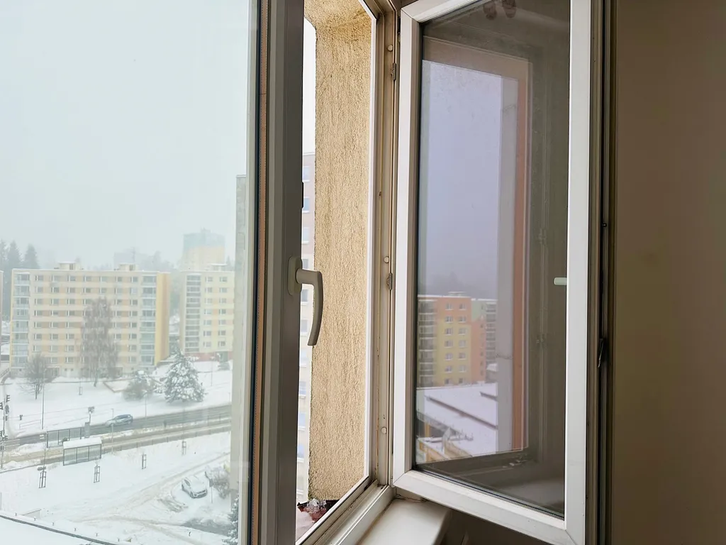 Dlouhodobý pronájem prakticky řešenému bytu 2+kk v 9. nadzemním podlaží s výhledem do okolí - umístěn na uzavřené pavlačové chodbě s oknem / pouze dva byty. Celý byt prošel před 15 lety modernizací – nespornou výhodou je zděná koupelna / vybavena sprchovým koutem a spojena s WC (novější typ závěsné Geberit WC modul) - obklad a dlažba v neutrálním odstínu, bílý koupelnový nábytek. Další předností, jež Vás zaujme, je prakticky řešená rohová kuchyňská linka včetně sklokeramické varné desky, elektrické horkovzdušné trouby, komínové nerez digestoře, vestavěné pračky a myčky šíře 600 mm, a dále vestavěná lednice i spižní skříně – vše v přírodním odstínu světlého buku / jednoznačnou prioritou je dostatek úložného prostoru – policový systém. Orientace obývacího pokoje včetně kuchyňského koutu je západní / příjemné odpolední sluníčko. Naopak ložnice má orientaci na severovýchod, zde byla instalována nová vestavěná šatní skříň / světlý odstín / přes celou stěnu pokoje. Následně i v předsíni je dostatečný prostor pro botník, nedílnou součástí jsou závěsné skříňky v horní části pod stropem a drobný nábytek, svítidla, okenní žaluzie a garnyže.