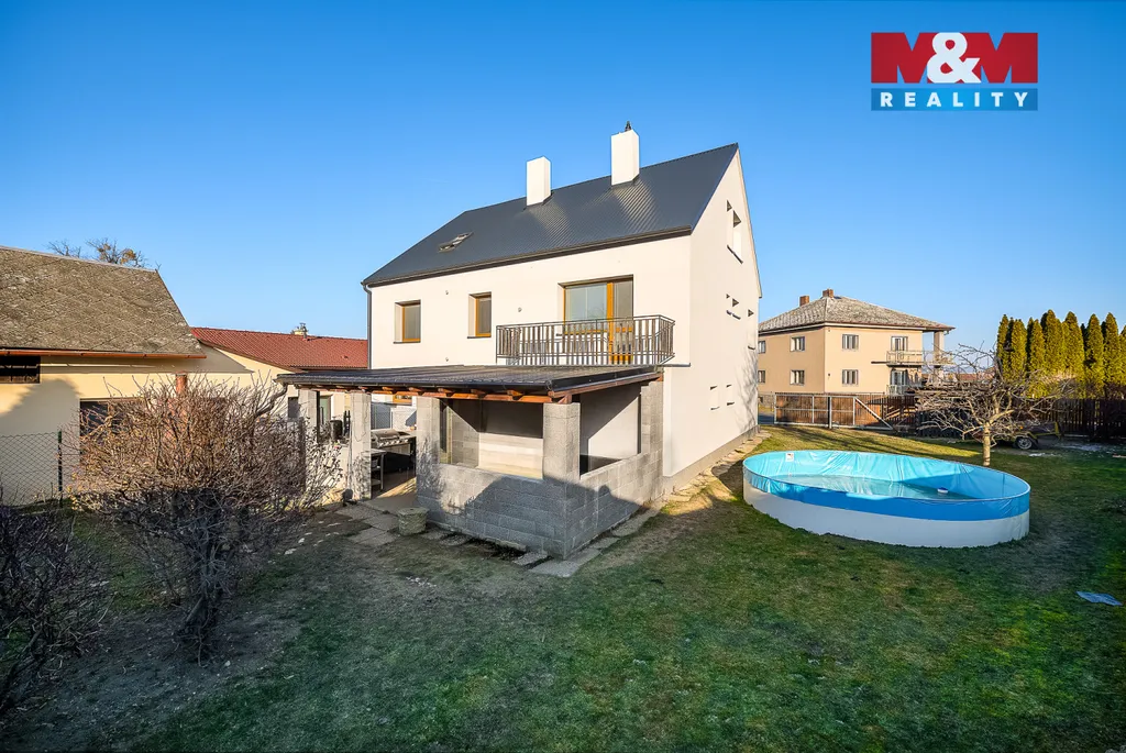 V přízemí se nachází prostorná garáž a technické zázemí s průchodem do zahrady, kde je k dispozici zděná pergola.