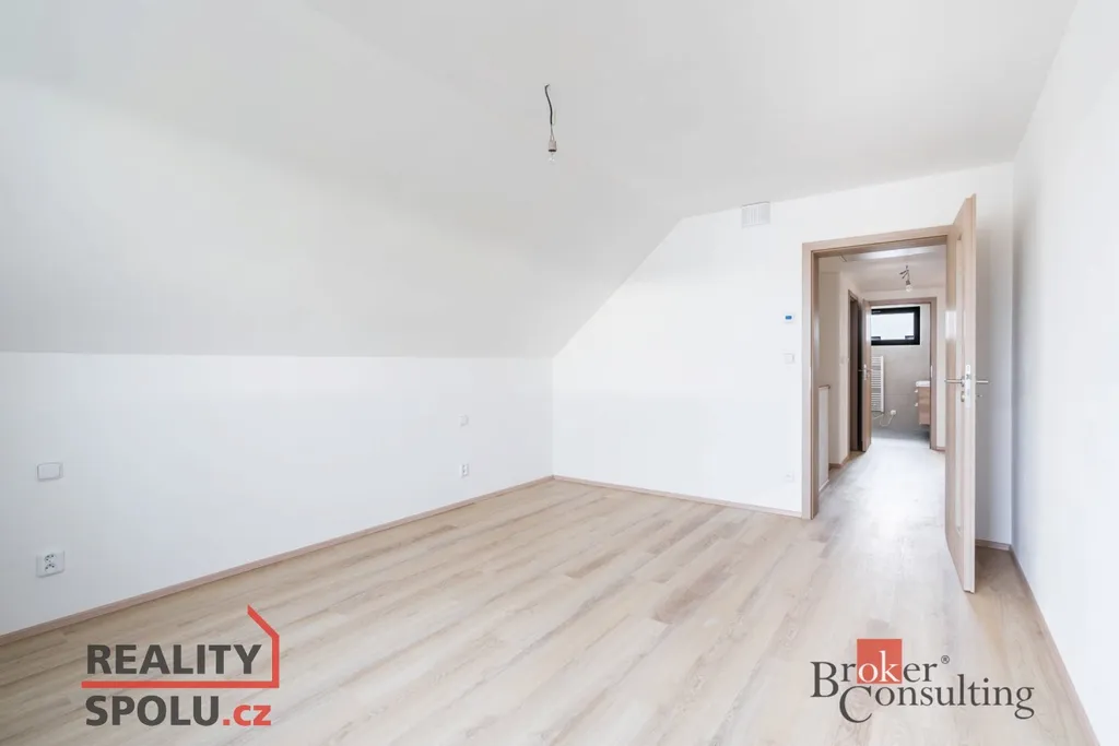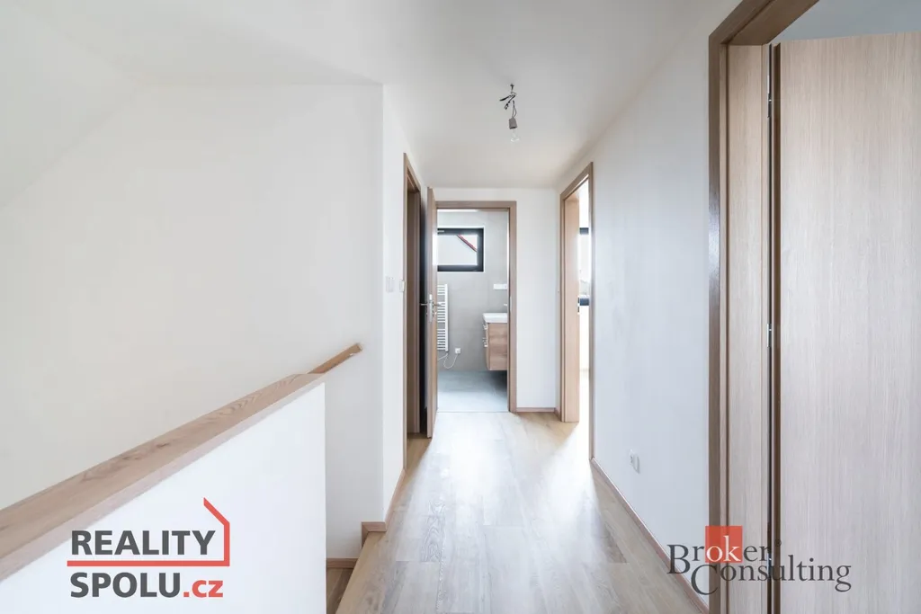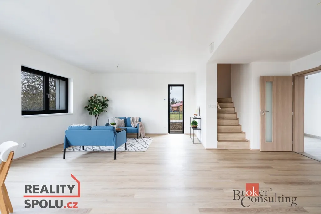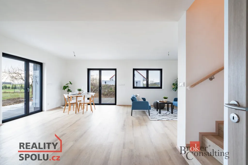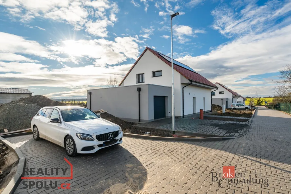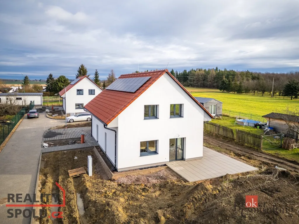 Jedná se o zděnou stavbu (Ytong) se dvěma nadzemními podlažími. Tato novostavba o dispozici 5+kk se nachází na pozemku o rozloze 723 m², přičemž celková plocha domu činí 164,8 m². V přízemí se nachází prostorný obývací pokoj spojený s kuchyní (41,1 m²) a vstupem na terasu (40 m²), dále je zde místnost, která může sloužit jako pokoj pro hosty či pracovna (11,8 m²), koupelna se záchodem (4,6 m²), technická místnost (2,9 m²) a ještě jedna menší místnost pod schody (4,0 m²). V prvním patře jsou dva pokoje s vlastní šatnou (17,8 m² a 16,0 m²), dále ložnice (16,0 m²) se samostatnou šatnou (3,0 m²) přes chodbu a také druhá koupelna (6,1 m²). Jistě také oceníte pudní prostor o velikosti cca 40 m².