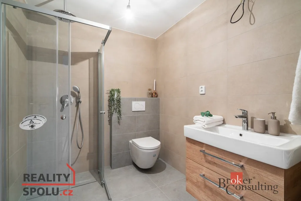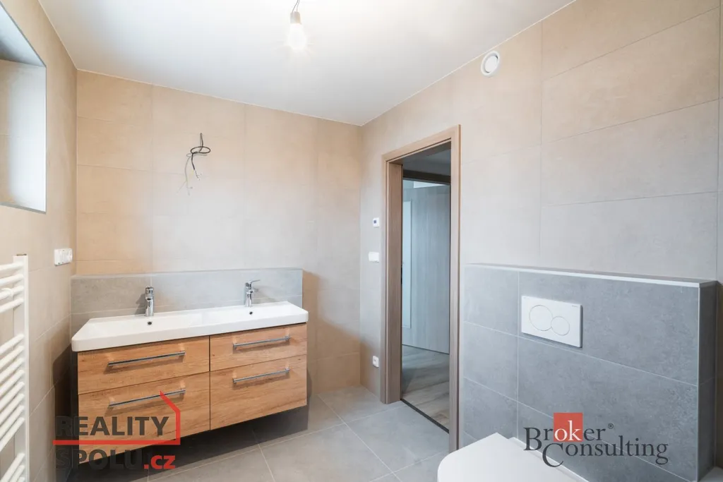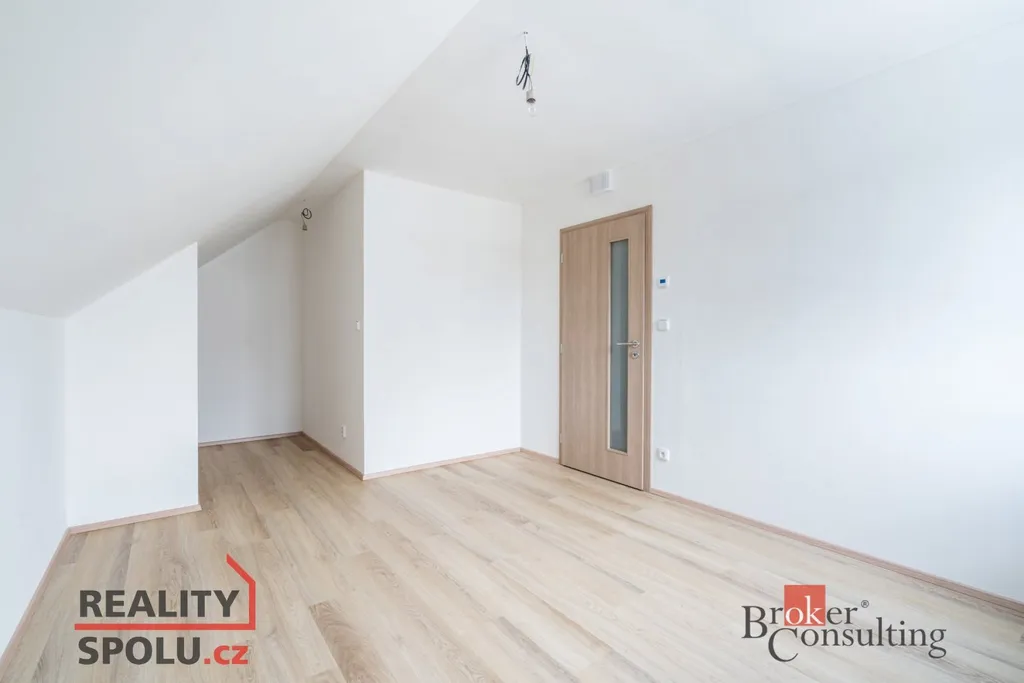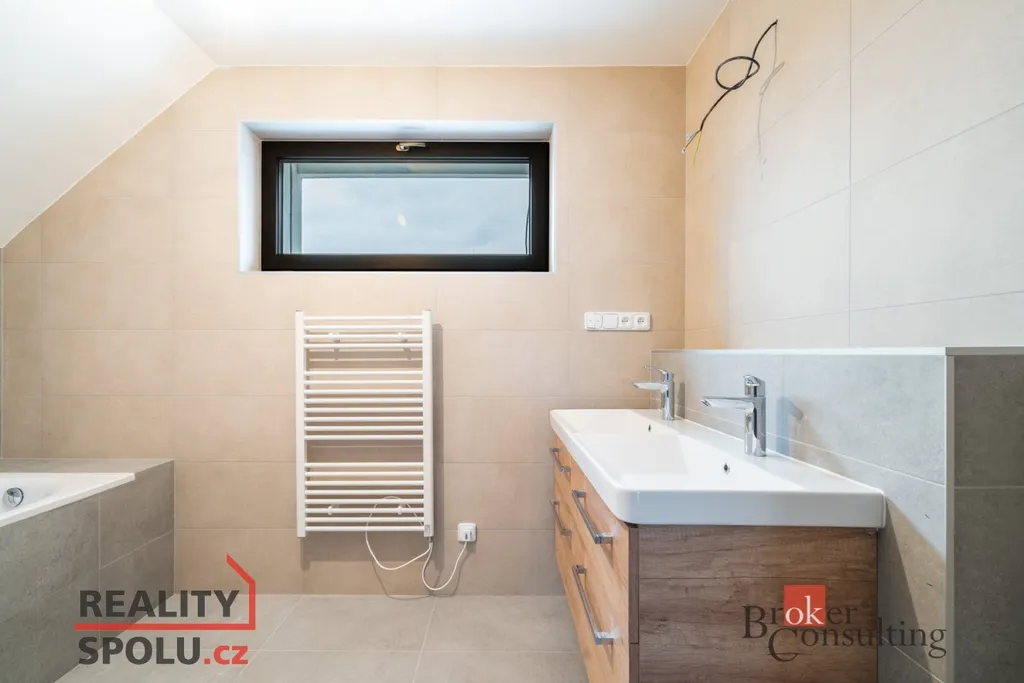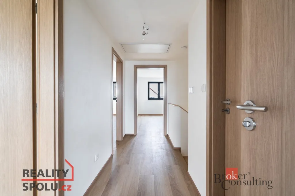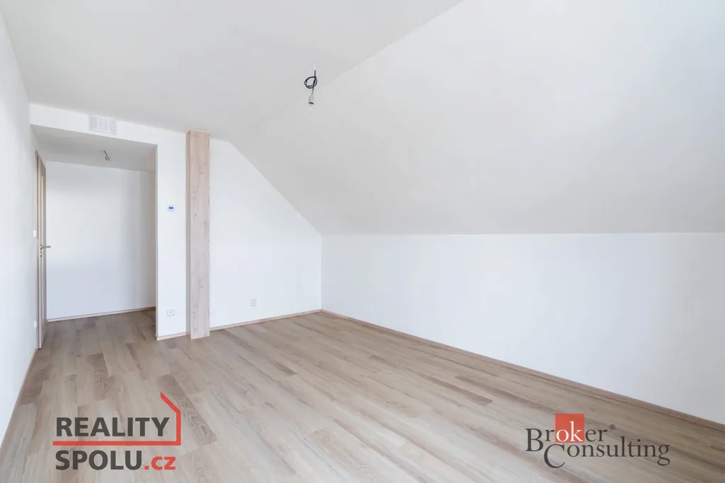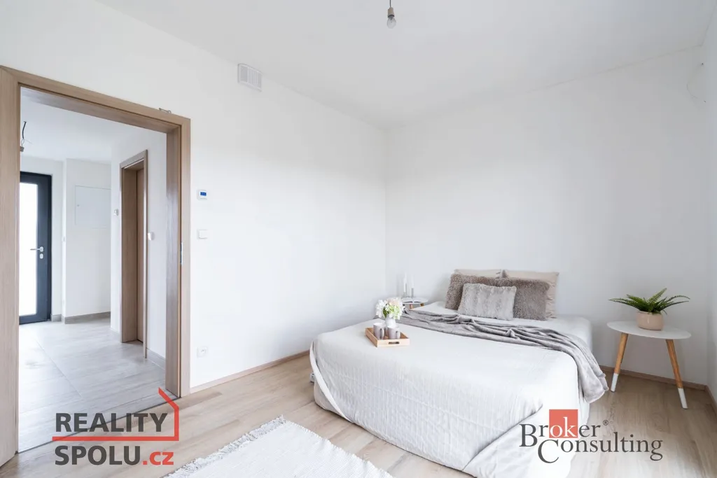 Jedná se o zděnou stavbu (Ytong) se dvěma nadzemními podlažími. Tato novostavba o dispozici 5+kk se nachází na pozemku o rozloze 723 m², přičemž celková plocha domu činí 164,8 m². V přízemí se nachází prostorný obývací pokoj spojený s kuchyní (41,1 m²) a vstupem na terasu (40 m²), dále je zde místnost, která může sloužit jako pokoj pro hosty či pracovna (11,8 m²), koupelna se záchodem (4,6 m²), technická místnost (2,9 m²) a ještě jedna menší místnost pod schody (4,0 m²). V prvním patře jsou dva pokoje s vlastní šatnou (17,8 m² a 16,0 m²), dále ložnice (16,0 m²) se samostatnou šatnou (3,0 m²) přes chodbu a také druhá koupelna (6,1 m²). Jistě také oceníte pudní prostor o velikosti cca 40 m².