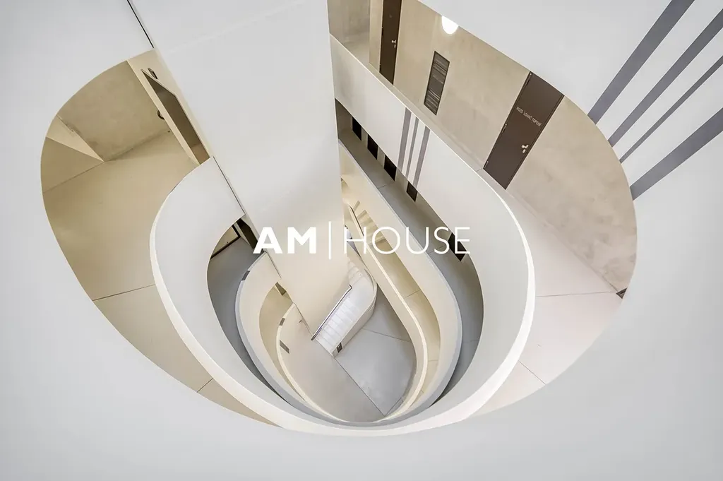 Centrum obývací části představuje velký pokoj s kuchyňským koutem odděleným skleněnou zdi s posuvnými dveří. Jedna ložnice ma koupelnu se sprchovým koutem, umyvadlem a WC, dva další pokoje jsou spojené koupelnou s vanou. V být je další samotné WC a technická místnost/prádelna.