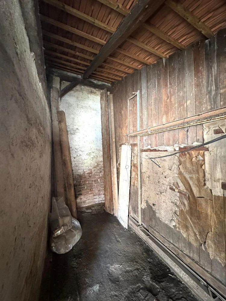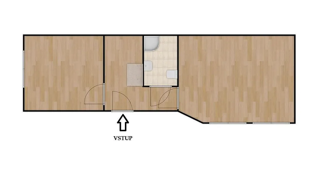 Vstupními dveřmi vejdeme do vstupní místnosti, která slouží zároveň jako kuchyně a její celková výměra činí přibližně 7,44 m². Tato místnost tvoří přirozený střed bytu, který umožňuje pohodlný přístup do jeho ostatních částí. Z kuchyně vede vstup do prvního pokoje o výměře cca 14,57 m² a lze jej využít jako obývací pokoj či ložnici. Z kuchyně pokračujeme do menší chodby o výměře cca 2,04 m², která zajišťuje přístup do koupelny. Koupelna o celkové ploše cca 2,82 m² je prakticky řešena a je vybavena sprchovým koutem, umyvadlem a toaletou. Poslední místností bytu je prostorný pokoj orientovaný do klidného dvora. Tato místnost o celkové výměře cca 17,16 m² díky orientaci do dvora nabízí klidné a příjemné prostředí vhodné k odpočinku.