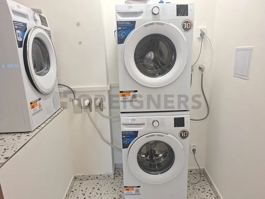 Pračka a sušička se sdílí za poplatek ve výši 50,-Kč.