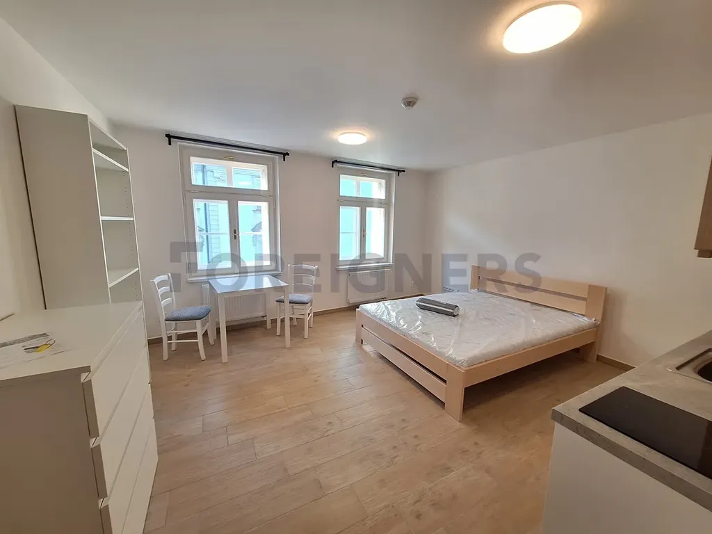 Měsíční nájem činí 16 500 Kč včetně energií a internetového připojení.