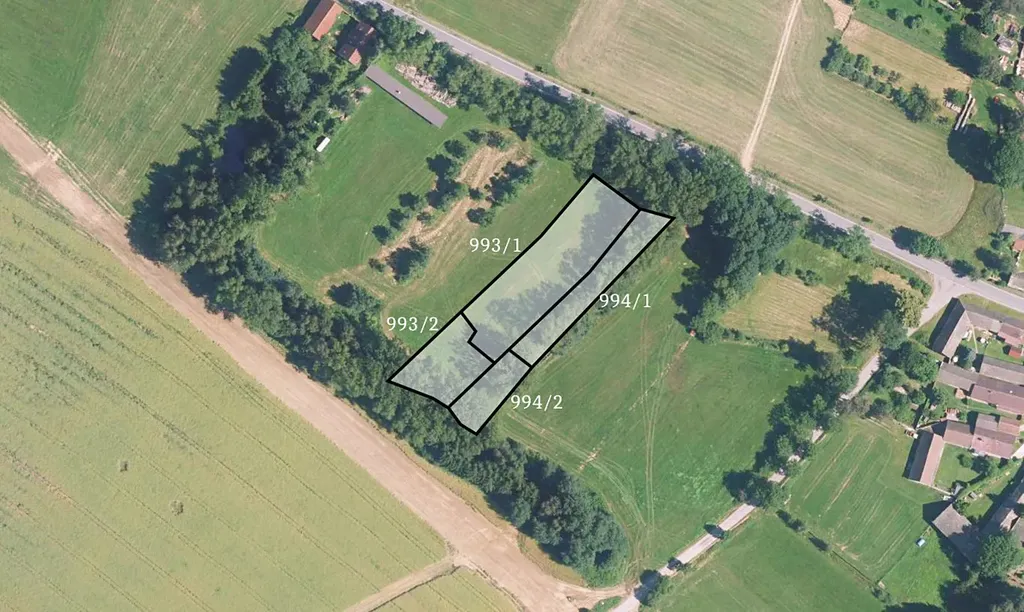Území leží v místní části obce Žirovnice. Pozemky jsou svým tvarem a dispozicí ideální pro geodetické rozdělní a získání poloviny zobrazené plochy do výlučného vlastnictví.