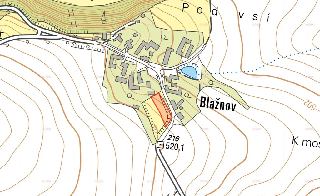 Pozemek leží v územní části zvané Blažnov. Tradiční české vesnici v klidném prostředí a zároveň dostupností k dalším obcím, například do Pacova. V blízkém i vzdálenějším okolí obce je řada turisticky zajímavých míst. Jedná se nejenom o přírodní, turistické a historické zajímavosti, ale i o místa k relaxaci.
