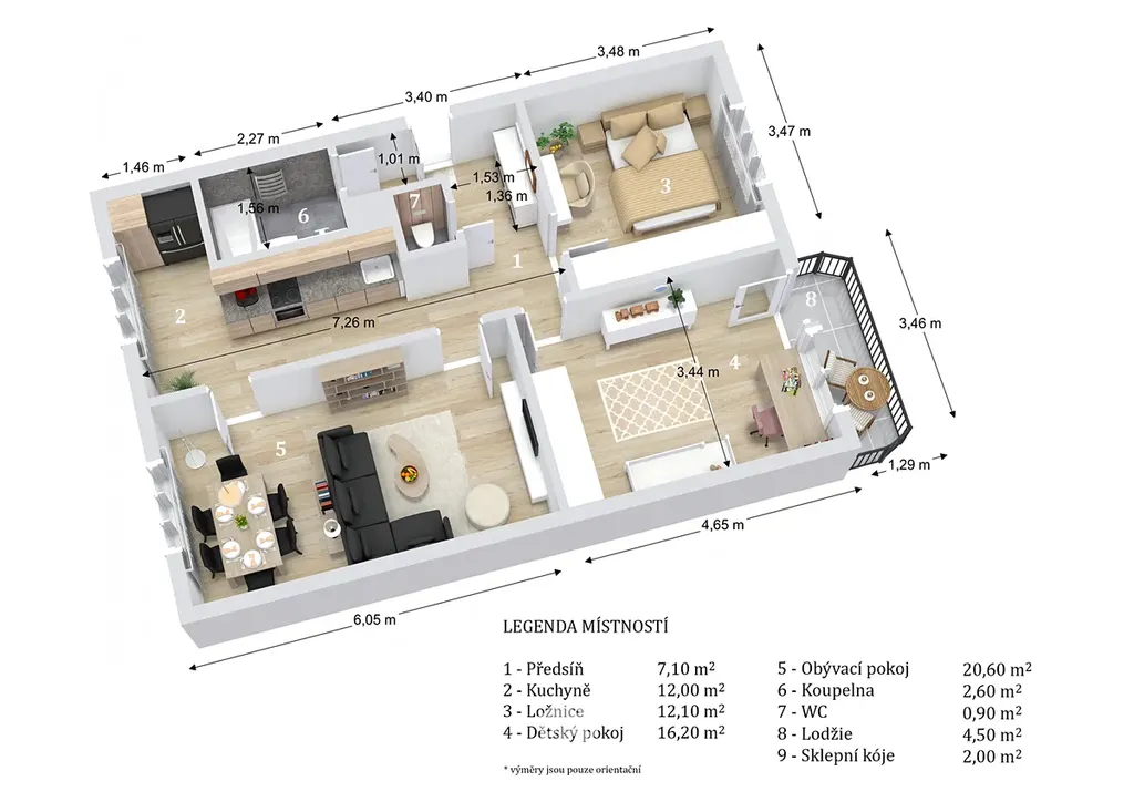 Jednotlivé výměry místností: