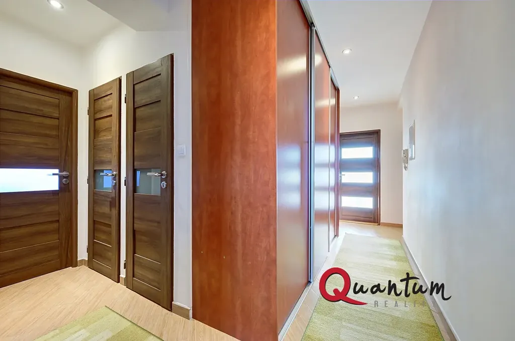 Obývací pokoj s parketovou podlahou je orientován na jih a východ, je krásně prosvětlený po celý den a nabízí vstup na zasklenou lodžii, která může sloužit jako příjemné místo k posezení nebo relaxaci. Kuchyně je od obývacího pokoje oddělena nízkou zídkou a je prakticky řešena tak, aby poskytovala dostatek pracovního prostoru. Z chodby se vstupuje do prostorné ložnice orientované na východ a do dětského pokoje s oknem na sever, oba pokoje mají parketové podlahy a klidnou atmosféru vhodnou k odpočinku i dětským aktivitám. Koupelna je vybavena sprchovým koutem, oknem a místem pro sušičku, toaleta je samostatná a vedle ní se nachází technická místnost s plynovým kotlem a připojením pro pračku.