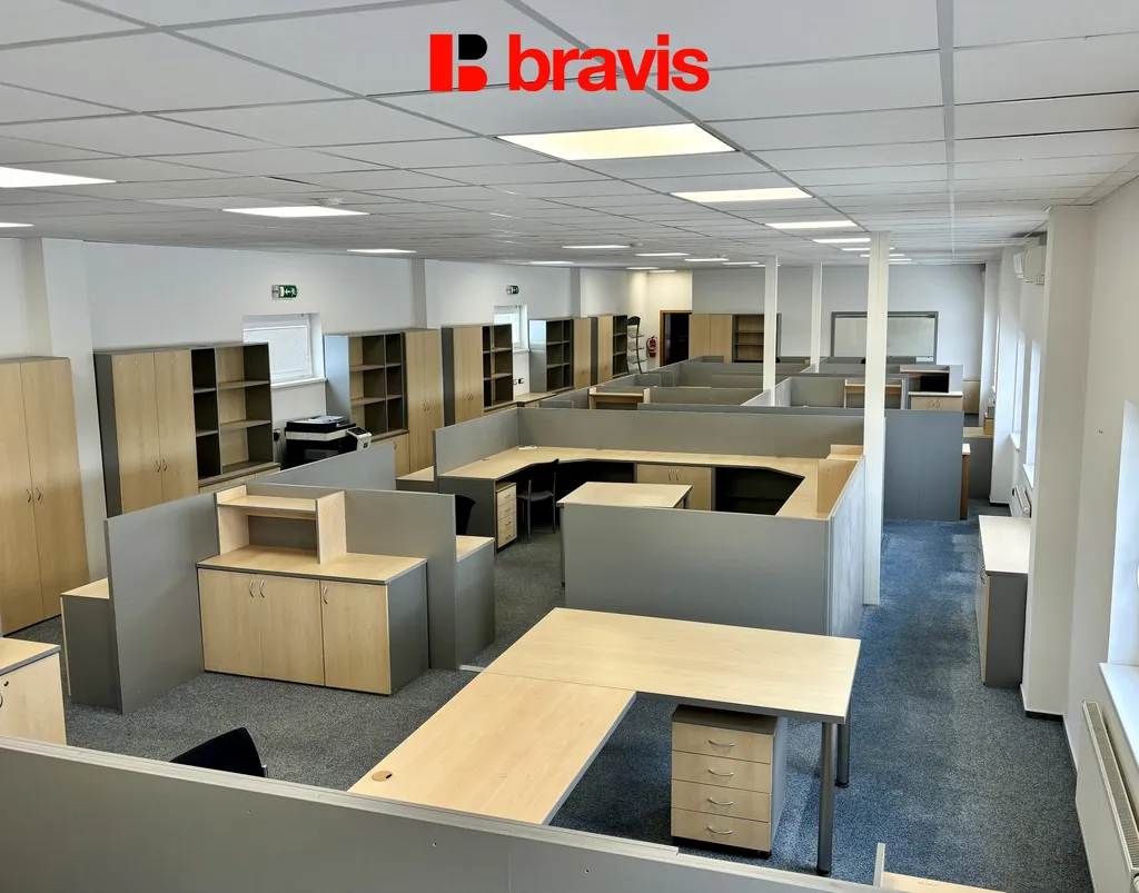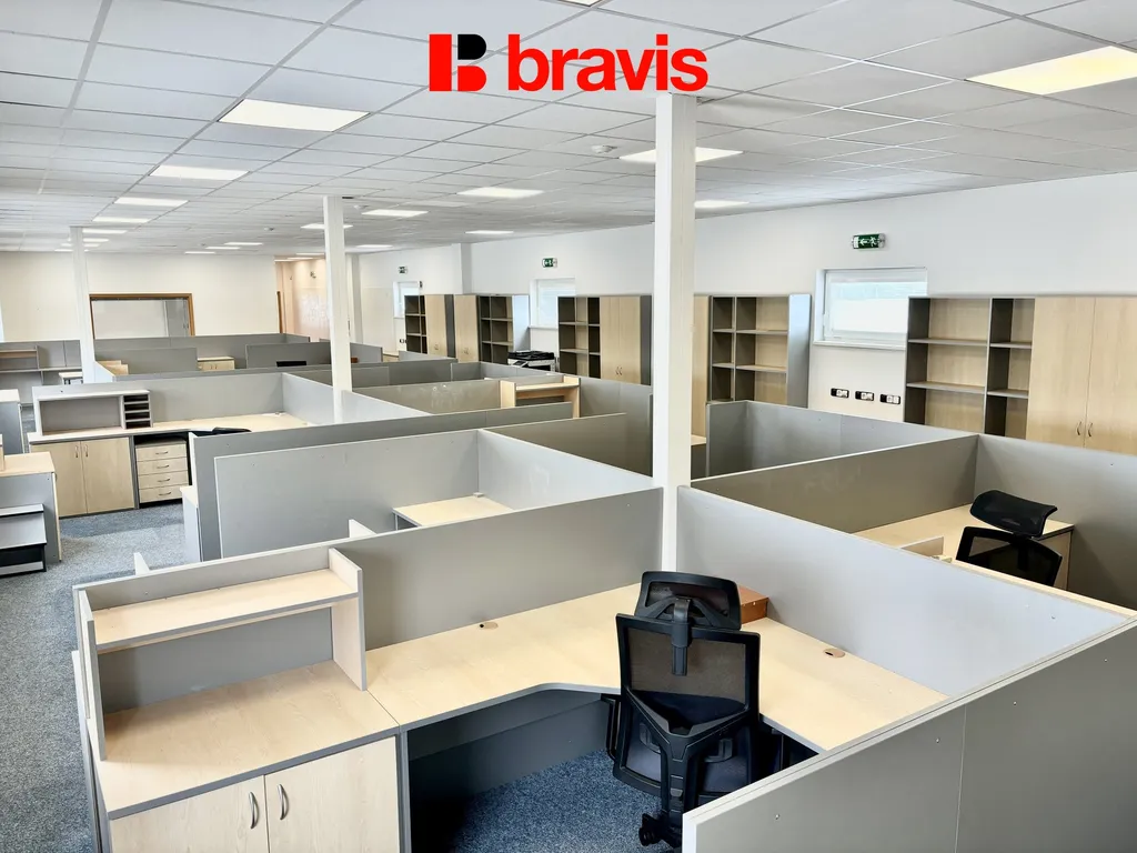 Klimatizované kanceláře o celkové velikosti 257 m2 se nachází v 1. NP budovy, skládají se z jedné velké místnosti o velikosti 172 m2 a dvou místností o velikosti 14,4 m2 a 28,9 m2, které jsou od hlavní otevřené části odděleny dveřmi a okny, mohou sloužit např. jako zasedací místnosti. Kanceláře jsou zařízeny nábytkem, po dohodě je možné je i vyklidit, okna jsou vybavena žaluziemi, na podlaze je položen koberec. Kanceláře se rozprostírají na celém patře, takže nabízí dostatek soukromí a to i v podobě kuchyňky (11,6 m2) a oddělených toalet (30,1 m2) pro muže a ženy vč. sprchy, které nejsou s nikým sdílené a jsou k dispozici jen nájemci těchto kanceláří.