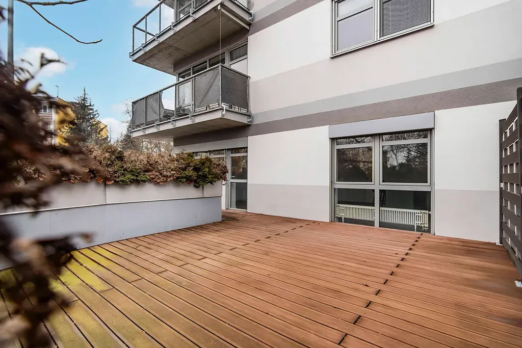 Byt splní očekávání náročných zájemců, kteří potřebují prostor a komfort, ale zároveň hledají praktičnost a skvělou využitelnost. Prostor obývacího pokoje se vstupem na terasu je vskutku velkorysý. Pro lepší představu o velikosti místností přidáváme vizualizaci možného uspořádání. Taktéž vizualizace postele v ložnici lépe vyobrazí její prostornost. Zrcadlovou skříň pak ocení každý, kdo má ve svých věcech pořádek.