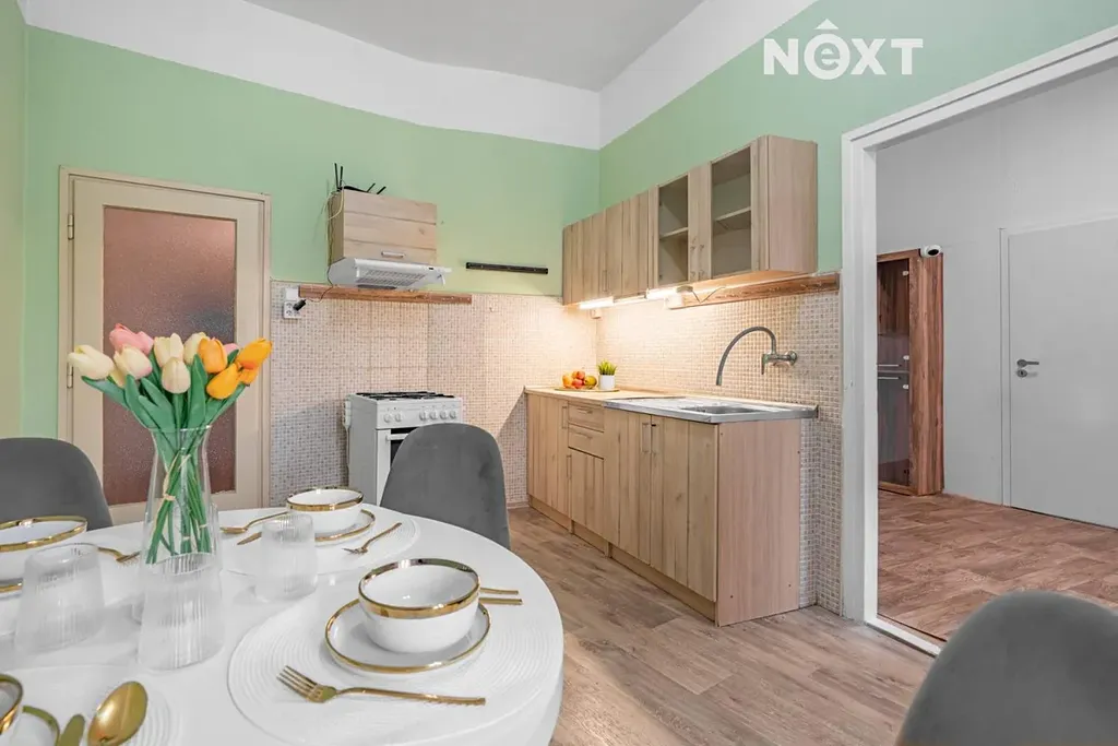 Byt o podlahové ploše přibližně 50 m² se nachází v 1. nadzemním podlaží udržovaného domu s výtahem. Původní dispozice 1+1 byla chytře upravena nenosnou příčkou, díky níž dnes nabízí samostatnou ložnici, obývací pokoj a oddělenou kuchyň – tedy 2+1.