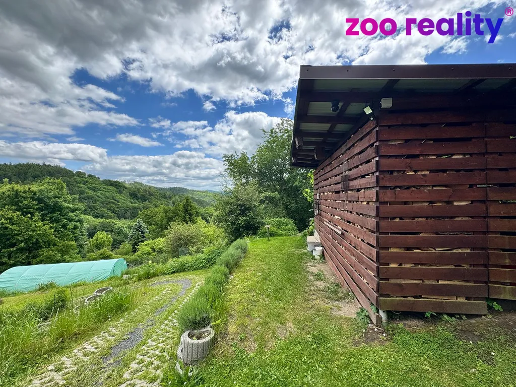 Velkou předností této nemovitosti je jedinečný výhled z terasy, ideální pro vychutnávání šálku kávy při ranním slunci nebo relaxaci při západu slunce. Před sluncem se schováte v příjemném krytém posezení u vchodu do chaty a k posezení s přáteli u ohně tu najdete také pěkné místo s výhledem do okolní krajiny.