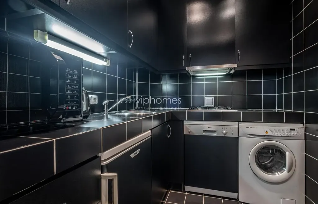 Interiér bytu nabízí vstupní halu, obývací pokoj s jídelním koutem, kuchyň vybavenou všemi potřebnými spotřebiči, (sporák, trouba, mikrovlnná trouba, lednice, mrazák, myčka), 2 ložnice, 2 koupelny, 2 šatny. Na podlahách parkety, obložení z originálních italských dlaždic, vestavěné skříně, myčka nádobí, pračka/sušička, internetové a satelitní TV připojení, domácí videotelefon. Internet je k dispozici za extra poplatek (není zahrnut v ceně pronájmu).