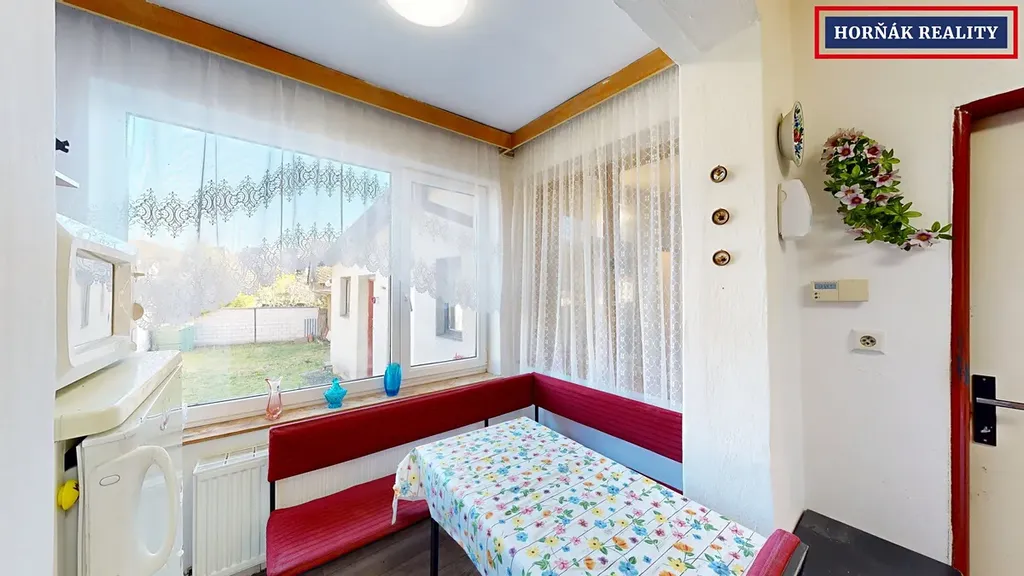 Vstup do domu vás vede prostorným průjezdem mířícím přímo do zahrady a ve své zadní části i do obytných prostor nemovitosti. Najdete v nich 4 obytné místnosti, kuchyň s jídelnou s výhledem do zahrady, koupelnu se sprchou a samostatné WC. Z vnitřní chodby domu je pohodlný přístup do malého sklípku, odkud vedou schody do první části půdy. Druhá část půdních prostor je přístupná z průjezdu. V případě budování podkrovních místností a propojení prostor stojí mezi oběma půdami pouze zeď. Zahrada nabízí ještě 2 uzavřené venkovní prostory pro různá využití.