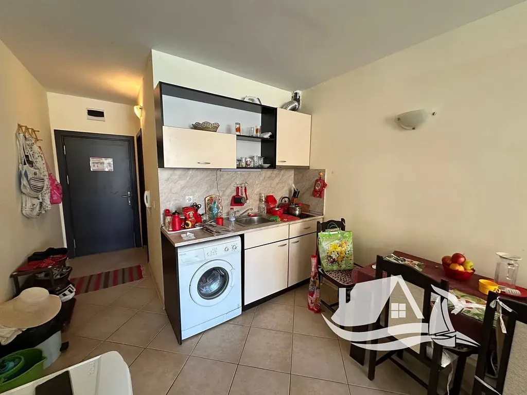 Velkou výhodou je strategická poloha. Komplex se nachází v centru Slunečného pobřeží, přibližně 600 metrů od široké písečné pláže s pozvolným vstupem do moře. V docházkové vzdálenosti najdete restaurace, bary, kavárny, obchody, banky i zdravotní středisko, což zajišťuje pohodlné fungování bez nutnosti dopravy.