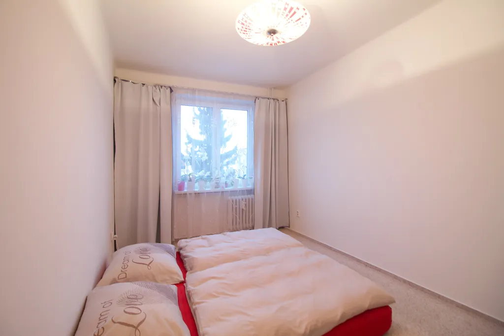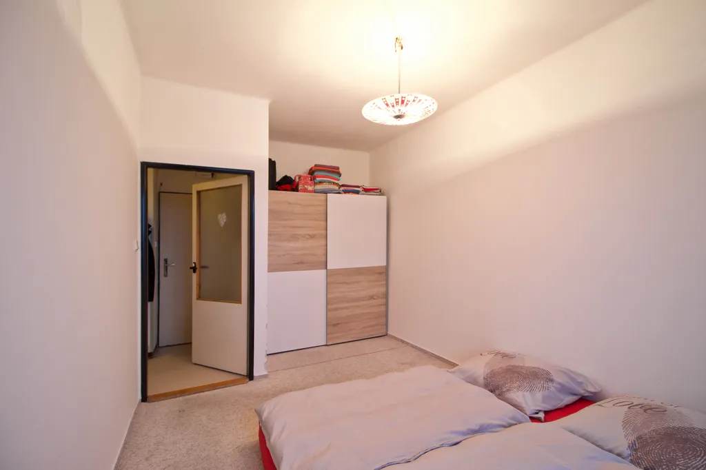 K pronájmu byt o dispozici 2+1 o podlahové ploše 45,66 m² ve 2. nadzemním podlaží cihlového domu. Největší zajímavostí je jižně orientovaná lodžie přístupná z obývacího pokoje a světlý interiér díky jižní orientaci všech oken.