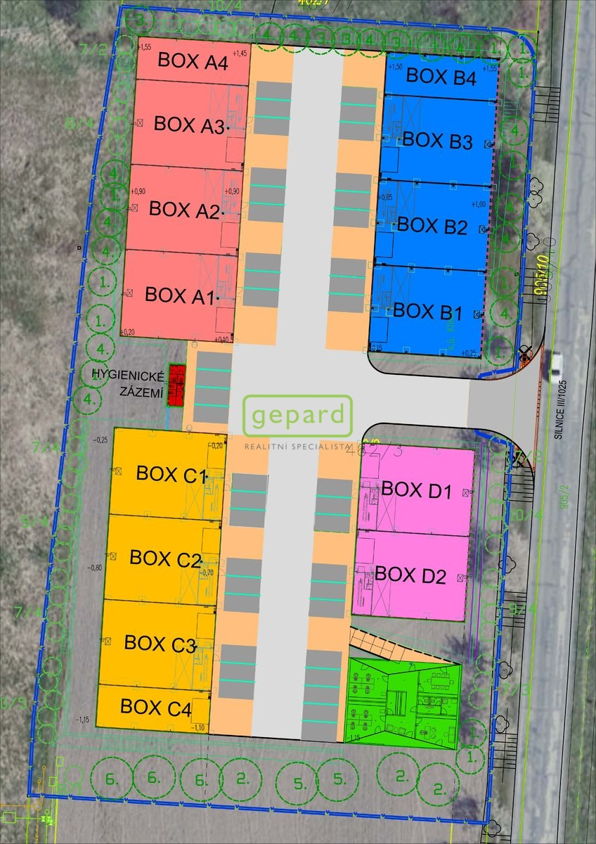 Předpokládaný termín dokončení a zprovoznění areálu je do 30.04.2025. Dle přiložených vizualizací je k dispozici koordinační výkres rozmístění jednotlivých hal + uprostřed areálu se počítá s vybudováním společných sociálních zařízení.
