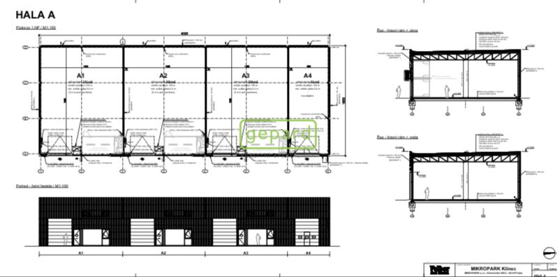 Hala A – celkem 4 kóje, 3x 188-191 m2 + 1x 94 m2, celkem 661 m2 nájemní plochy.