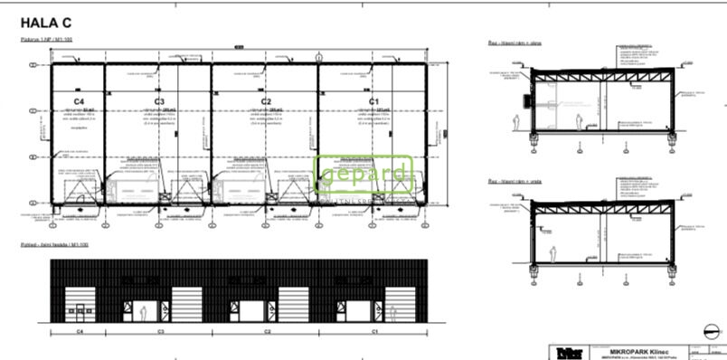 Hala C - celkem 4 kóje, 3x 188-191 m2 + 1x 94 m2, celkem 661 m2 nájemní plochy.