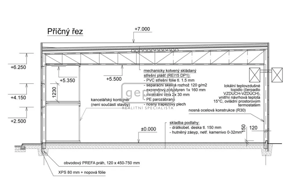 - Obvodový plášť: polyuretanový panel tl. 100 mm