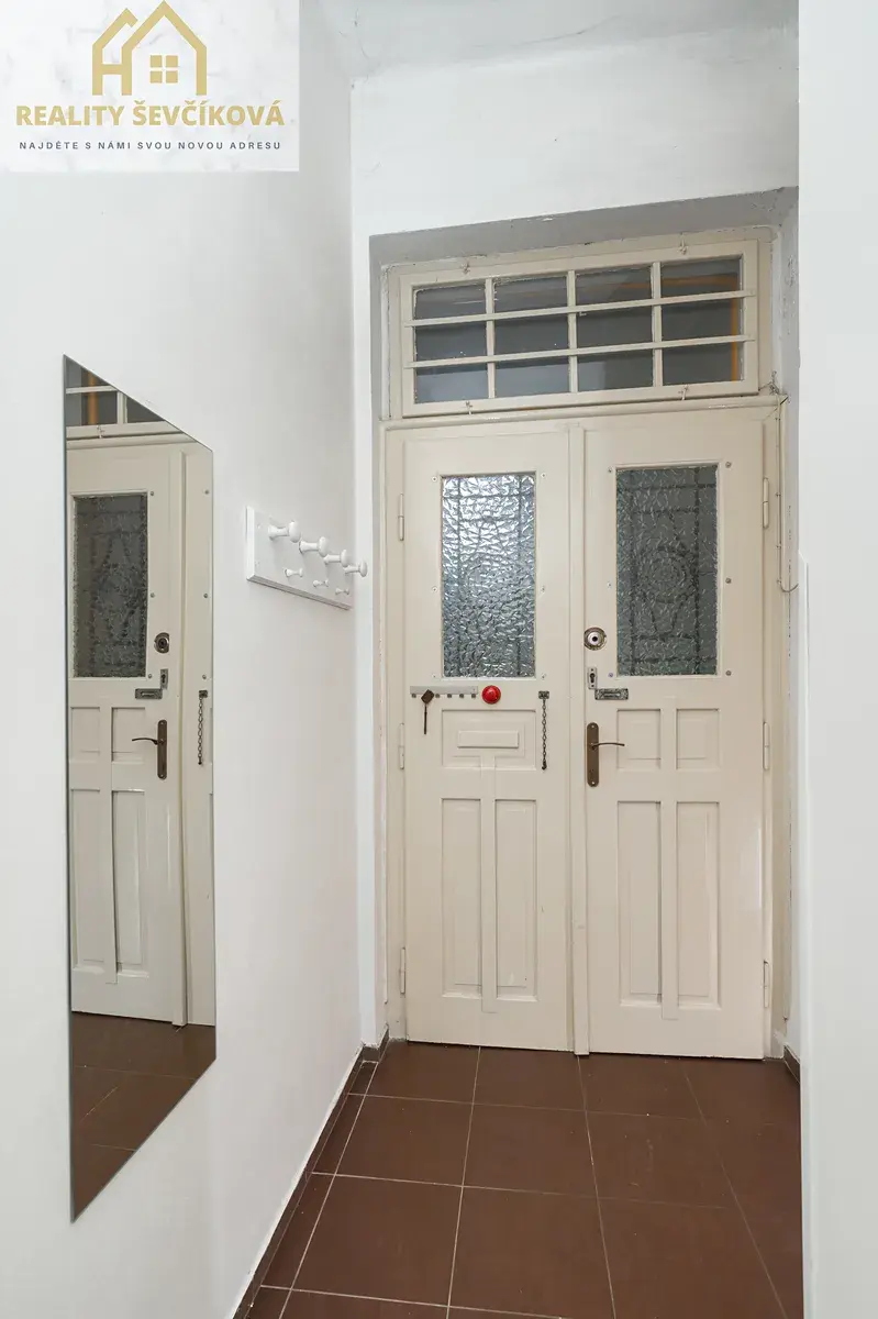 Jednotka si zachovala původní prvorepublikový charakter – dřevěné podlahy, renovované interiérové dveře a vysoké stropy (3,10 m) dodávají bytu jedinečnou atmosféru.