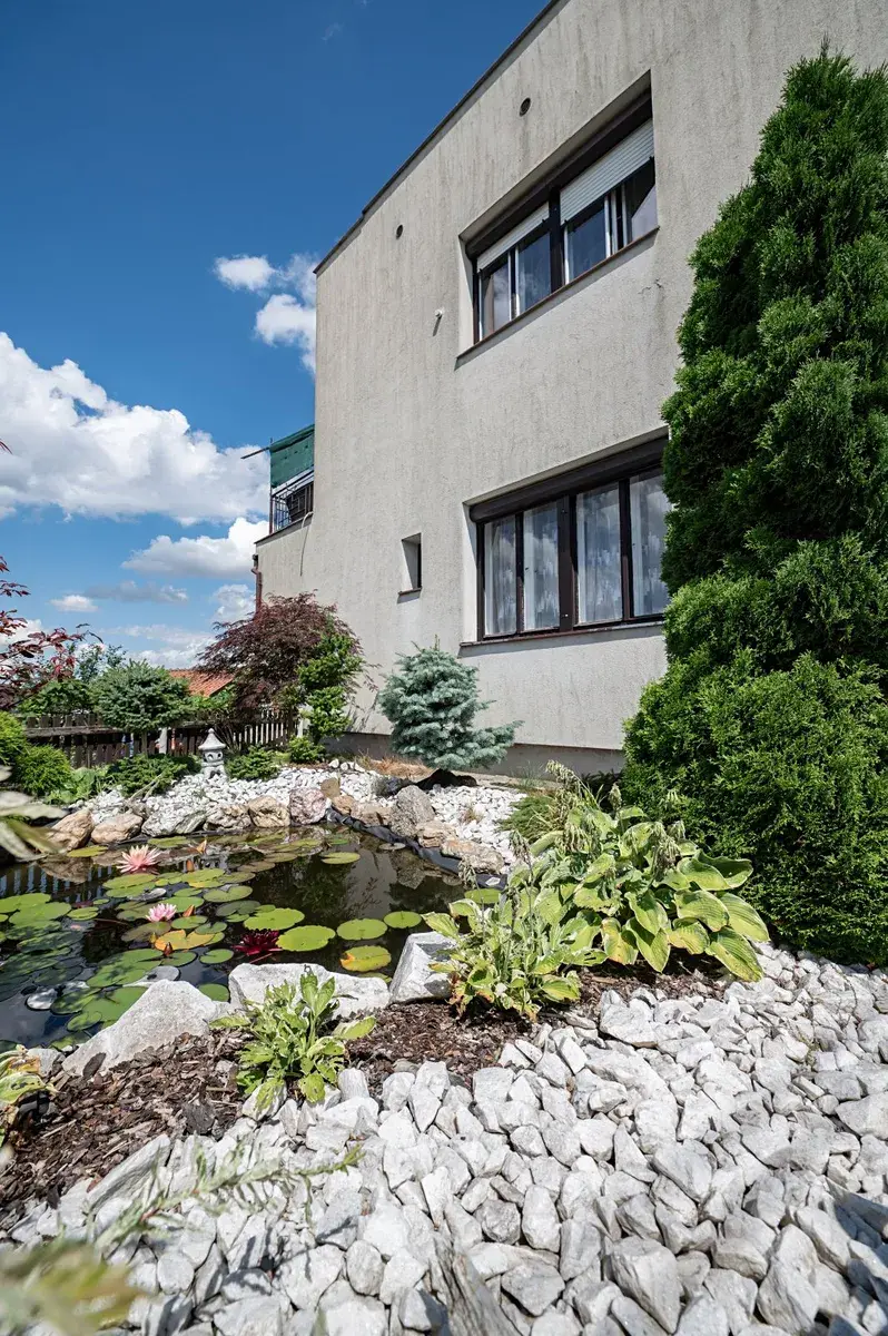 udržovaná okrasná a i užitková zahrada. Před domem je velká dvojgaráž o výměře 50m2, která je na