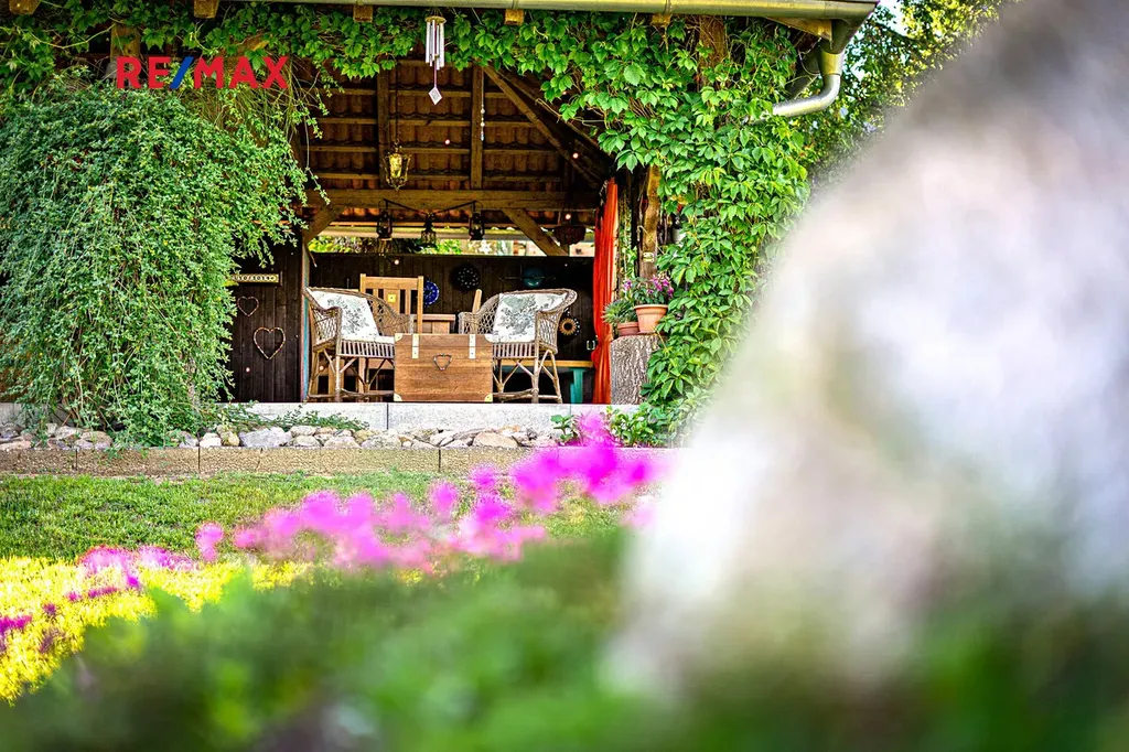 Samotná dechberoucí okrasná zahrada se vzrostlými stromy a dvěma jezírky, poskytuje maximální soukromí a vybízí k odpočinku či k setkávání s rodinou a přáteli. Najdete zde i užitnou část pro pěstování vlastní zeleniny. A jste-li milovníky přírody, jistě vás potěší množství živočichů, kteří zde našli své útočiště. V jarních a letních měsících se můžete zaposlouchat do ptačího zpěvu či milostného kuňkání žab. Pro údržbu zahrady vám ráda doporučím zahradníka.
