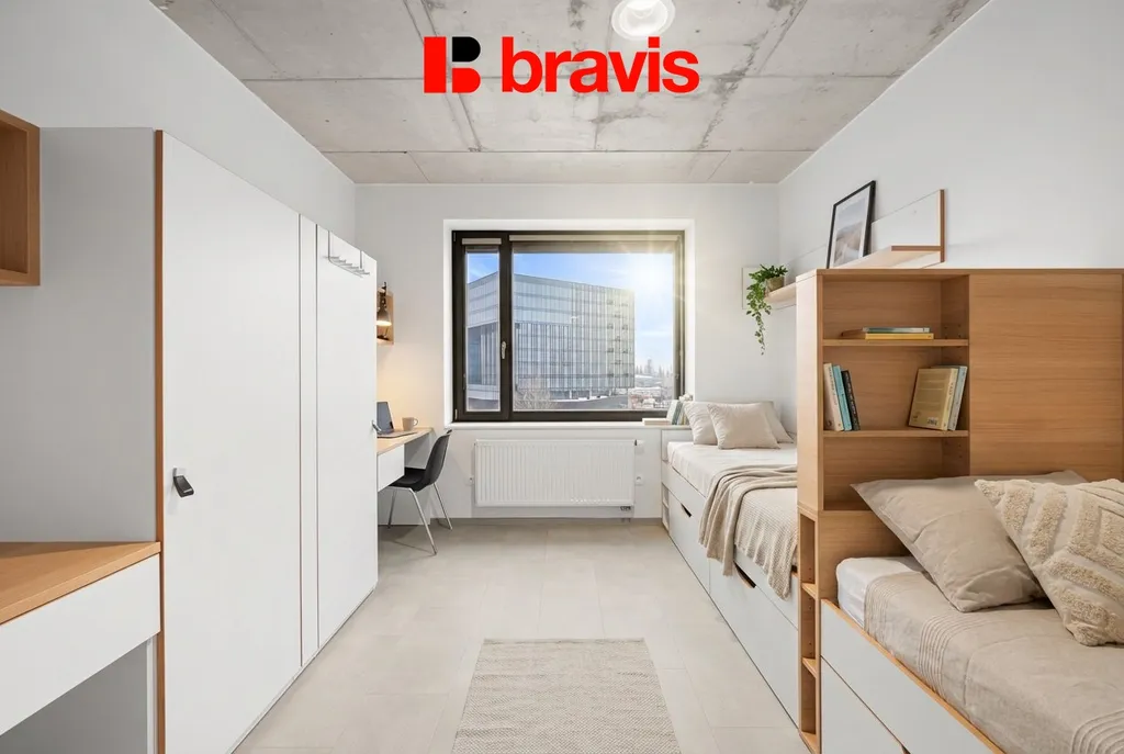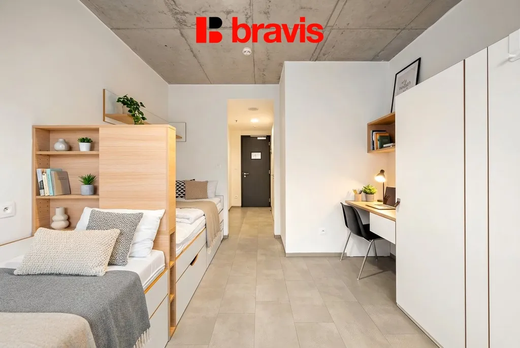 Kompletně zařízené studio o velikosti 24 m² je skvělou volbou pro studenty či začínající pracující. Lze pronajmout i krátkodobě již od jednoho měsíce.