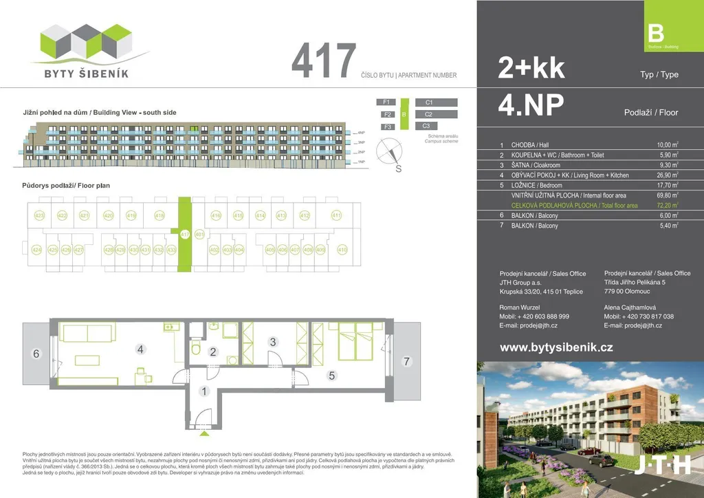 Projekt Šibeník II nabízí byty s dispozičním řešením 2+kk až 4+kk. Koncepce nízkopodlažních bytových domů je architektonicky řešena tak, aby svým obyvatelům poskytla zázemí pro rodinný život a zároveň plnila požadavek nadčasovosti, elegance, funkčnosti a vysokého komfortu. Nabízíme výhodné platební podmínky - po celou dobu výstavby vám stačí uhradit pouze 20% z ceny bytu a doplatek kupní ceny počká až po dokončení stavby a kolaudaci. Smluvně dohodnuté ceny garantujeme. Kontaktujte nás a pomůžeme Vám s výběrem!
