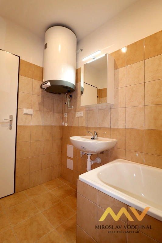 Jedná se o nájemní bydlení v přízemí cihlového domu s možností využití oploceného pozemku za domem v užívání s dalšími nájemníky domu. Byt disponuje kuchyňskou linkou s elektrickým sporákem se sklokeramickou deskou, digestoří. Koupelna je s vanou, umyvadlo, koupelnová skříňka se zrcadlem, přípojka a místo na pračku. Vytápění lokální elektrické (snížená sazba), ohřev vody el. bojlerem (100 l). Podlahová krytina PVC a dlažba. Plastová okna, osvětlení.