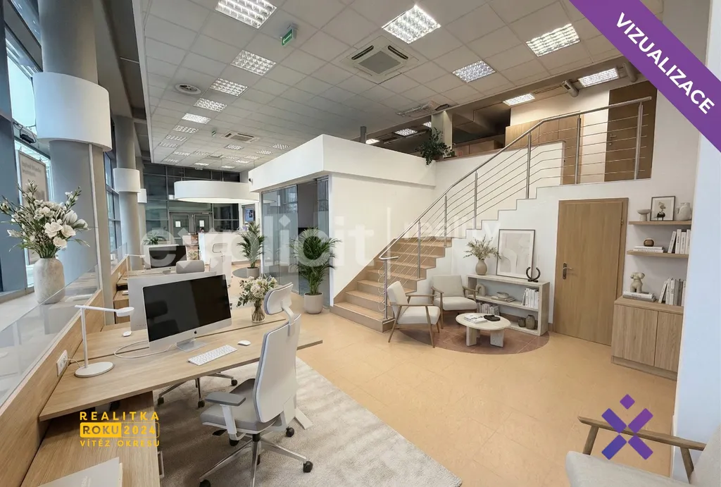 Dále k prostorům náleží samostatná kancelář, další prostory ve zvýšené galerii, kuchyňka, a sociální zázemí s vlastní toaletou. Prostory slouží k obchodním účelům a lze je využít např. jako butik, showroom, prodejna nebo obchodní kancelář. Současně mohou prostory sloužit jako atraktivní prostor pro pobočku Vaší společnosti, nebo jiné kontaktní místo s veřejností pro pojišťovny, cestovní kanceláře apod. Prostory se nabízí bez vybavení.